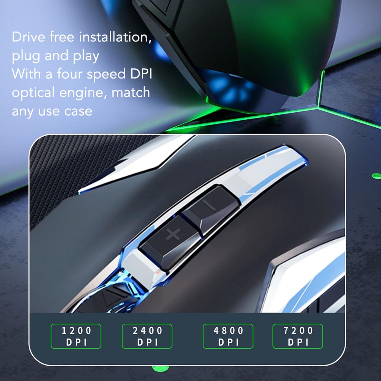 Zunate RGB Gaming Mouse, Multifunction Ergonomic 7200 DPI Wired Optical Gaming Mouse with Programmable Buttons and Backlight, for Computer Games, Work (Black)