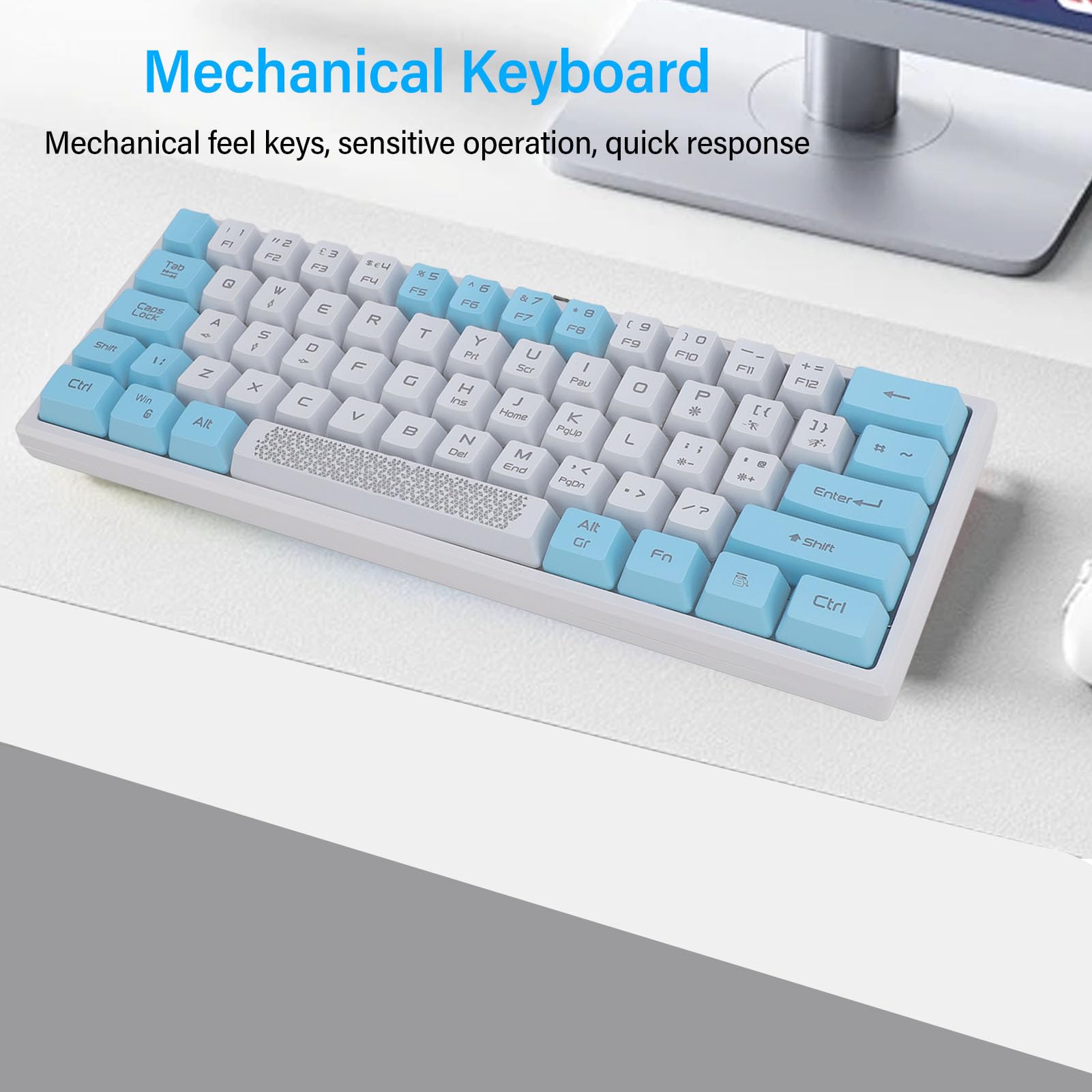Zunate RGB Lighting Mechanical Keyboard, Sensitive Operation 62 Key White and Blue Gaming Keyboard with Material for Home and Office