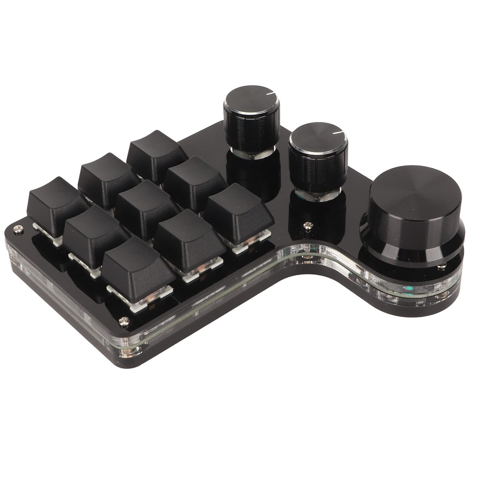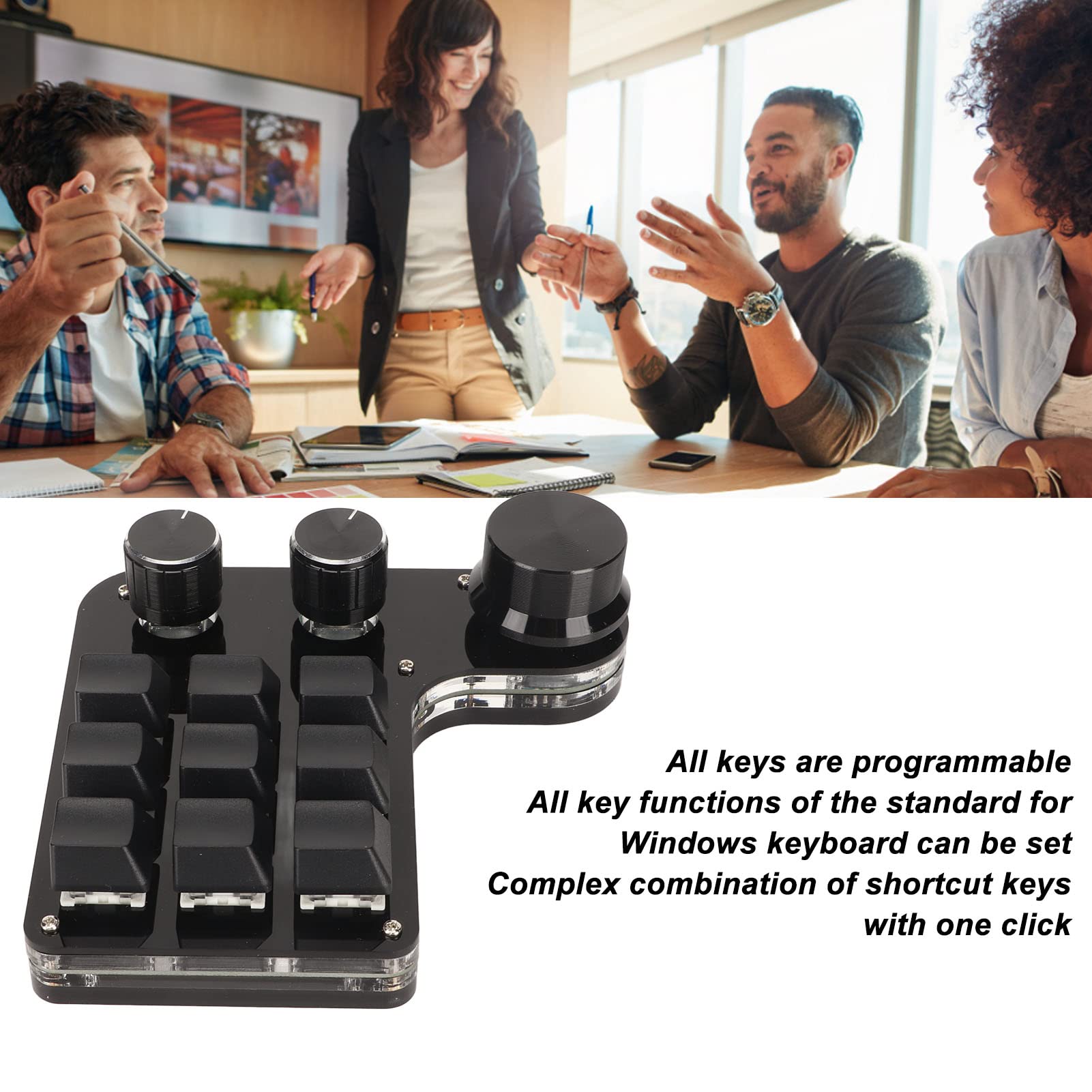 Yoidesu USB Mini 9 Key keypad with 3 Knob, RGB Light Blue Switch One Handed Programmable Macro Keyboard, DIY Customize Universal Mechanical Gaming Keyboard for PC Video Game