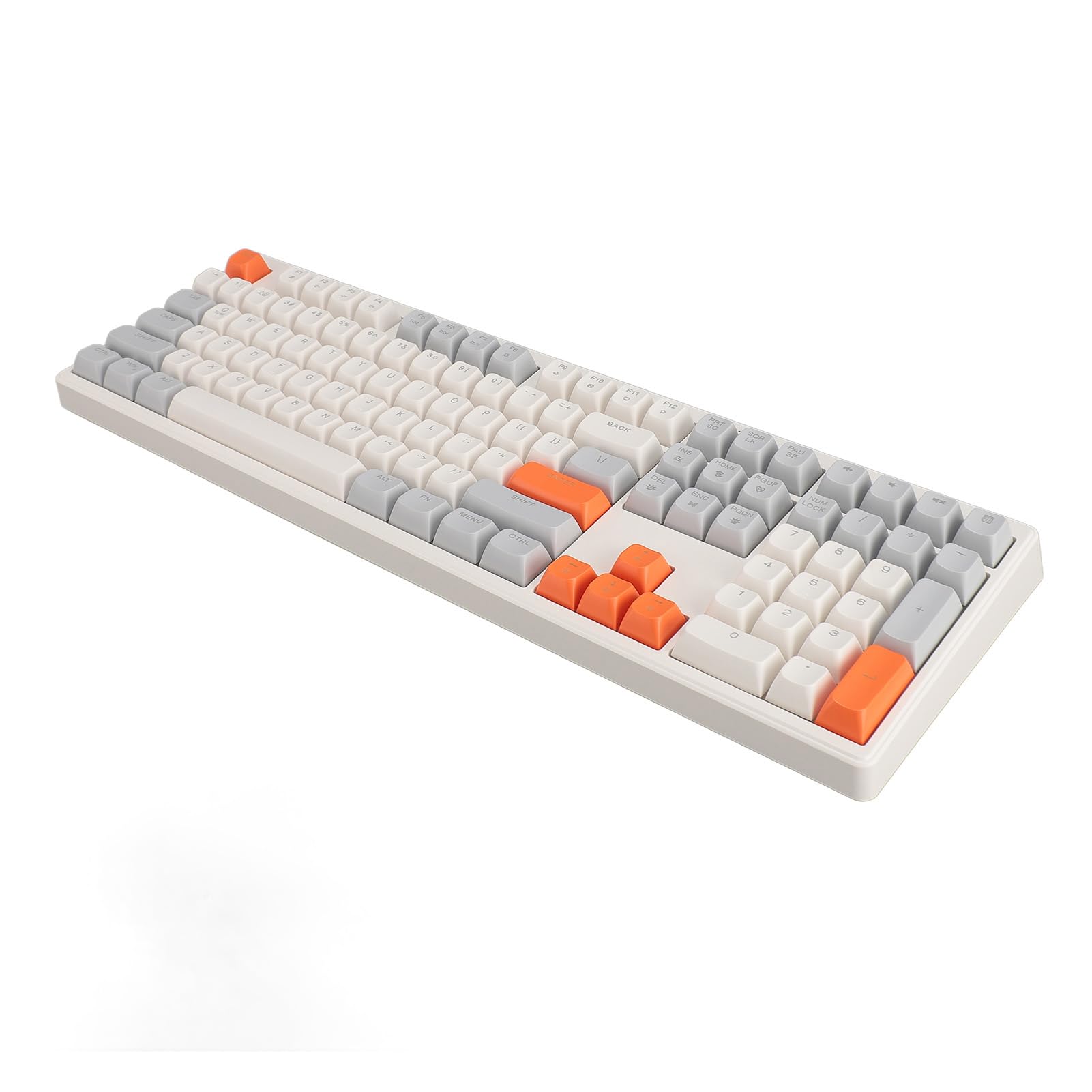 Gaming Keyboard, Plug and Play RGB Backlit Keyboard 108 Keys Silent for Home (Grey White Orange)