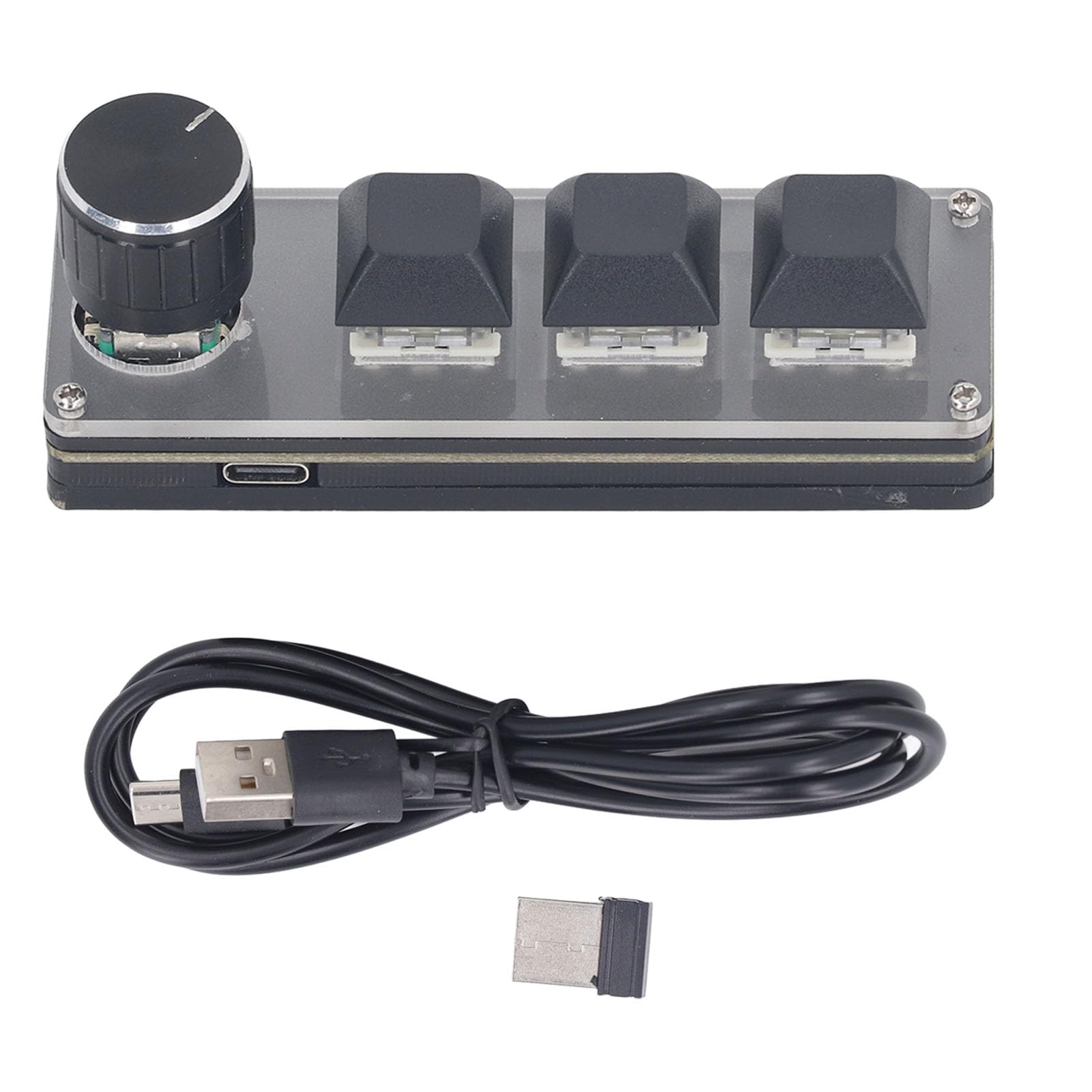 Walfront 3 Key USB Wired 2.4G Hot Swappable Programmable Gaming Keypad with Customisable Knob RGB LED Backlit for Gaming OSU Office Work