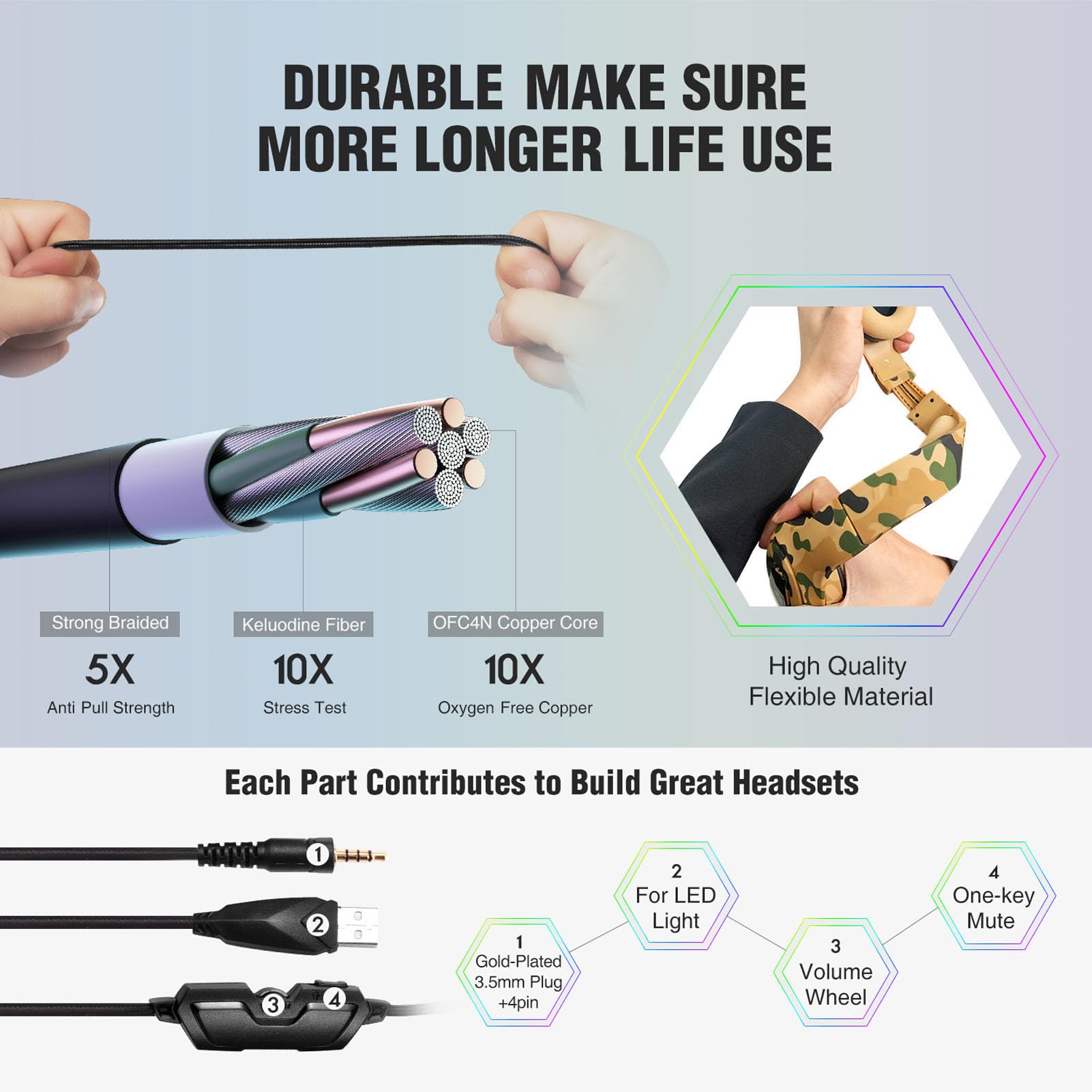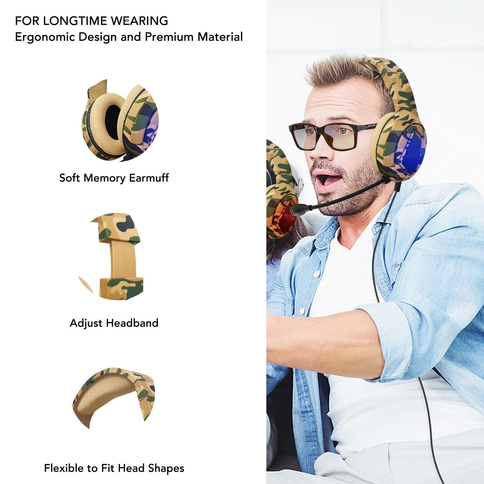 Zunate Wired Gaming Headset, Clear Sound Output Over Ear Headphone with Microphone, Fashionable Camouflage Color, for Computer, Camouflage Design (Desert Camo)