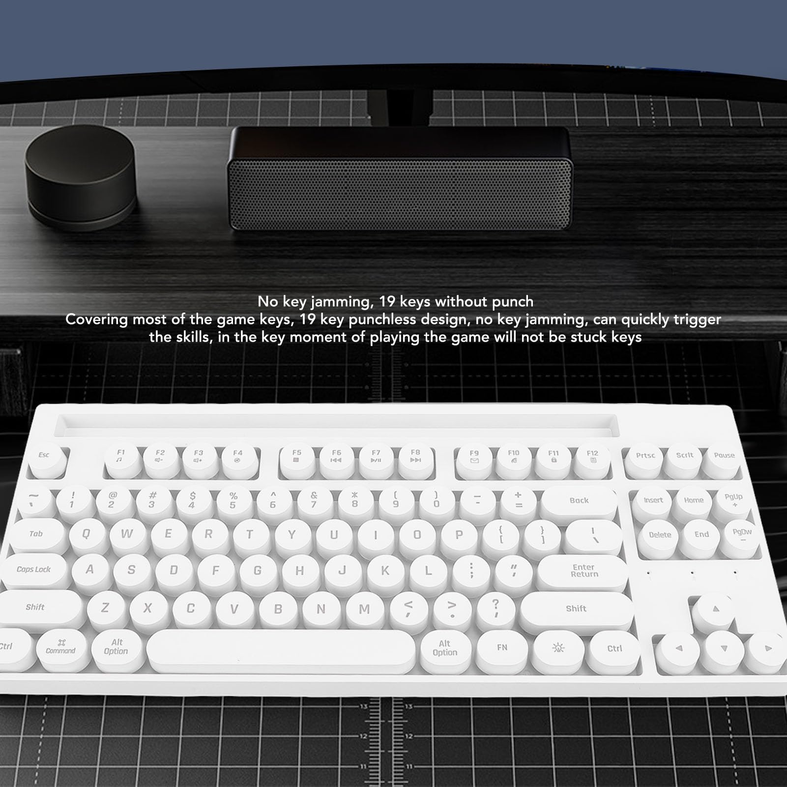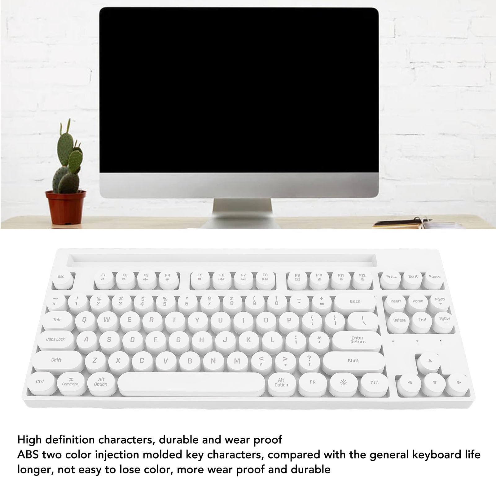 ciciglow Wired Keyboard, 87 Keys USB Wired Keyboard Punk Round Keycaps Gaming Keyboard with Light and Stand for Computer Laptop PC (White)