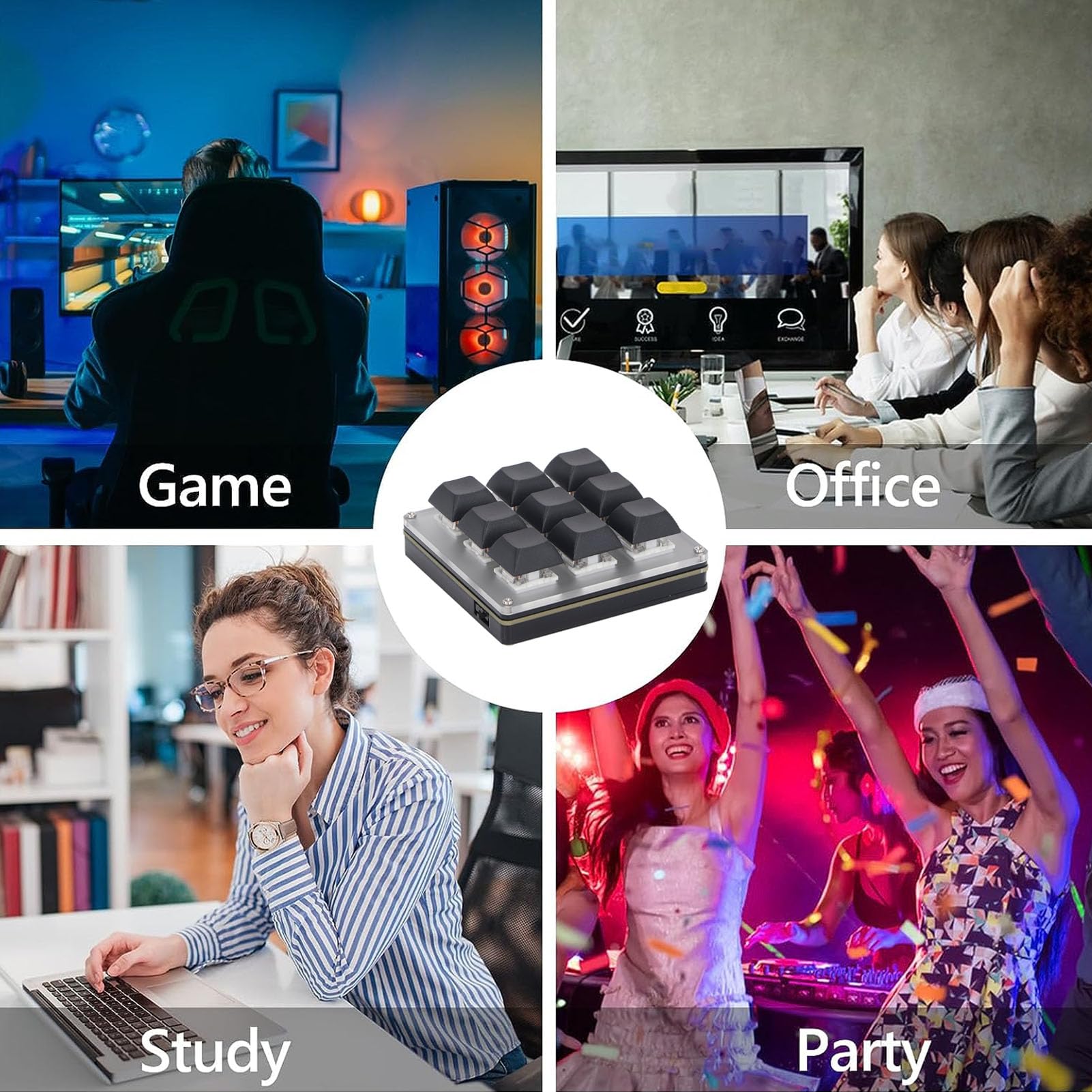 Walfront Mechanical Gaming Keyboard 9 Keys with Automatic Sleep Mode ABS 2.4G USB Type C Bluetooth for Gaming Industrial Control