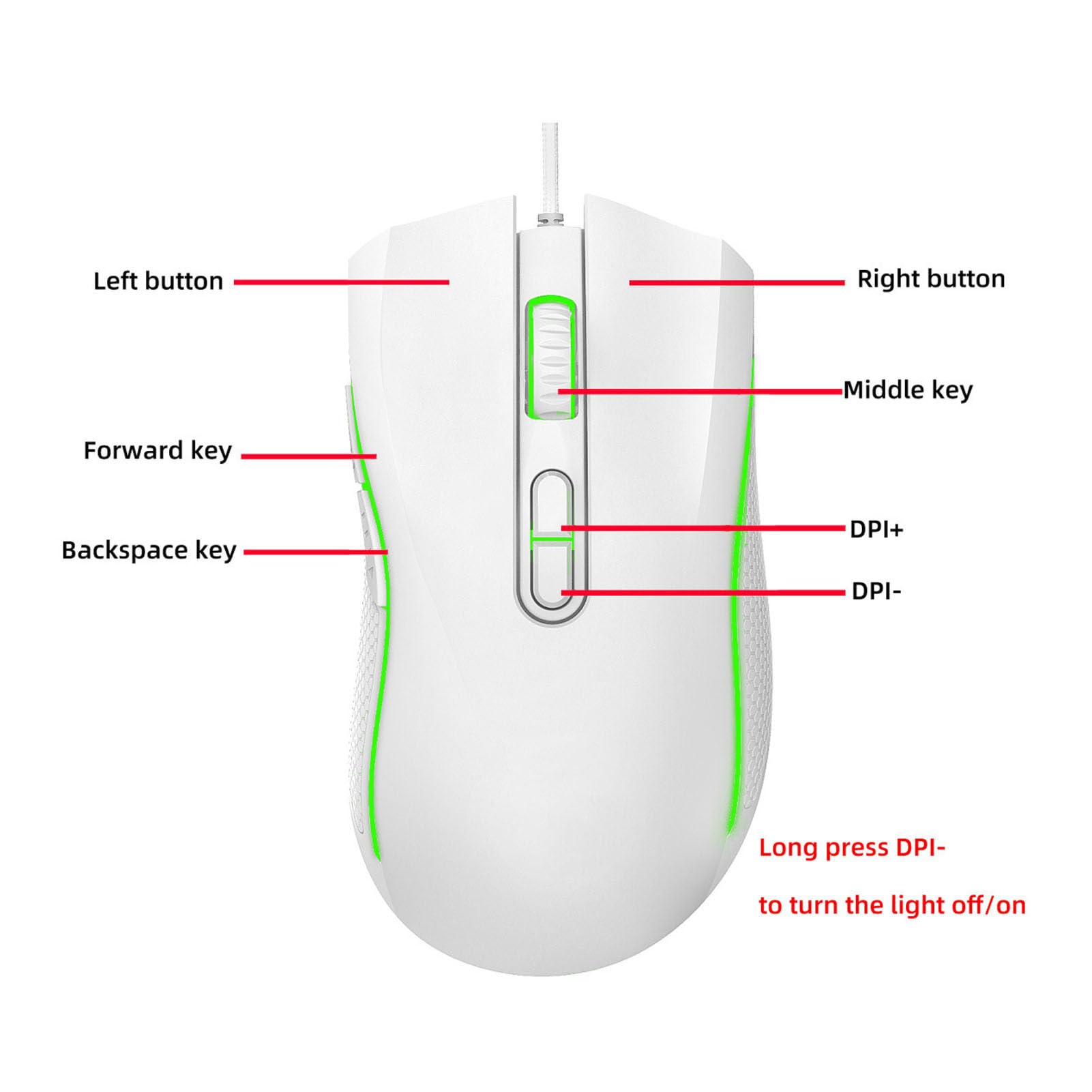 ciciglow Adjustable DPI Gaming Mouse with Flexible Buttons, Colorful Backlit, Wired USB Optical Computer Mouse for Gamers