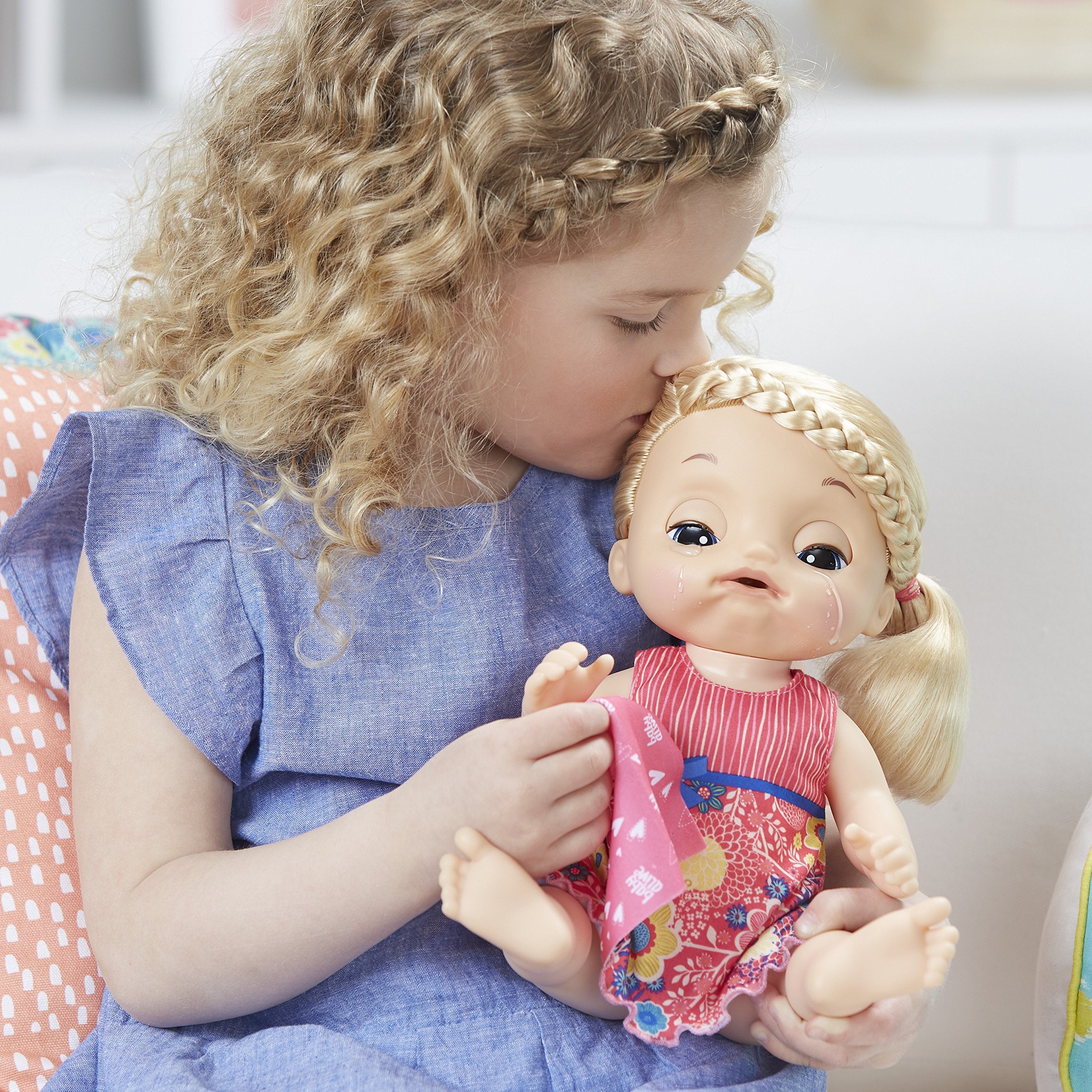 Enjoy all of the fun, playful moments of growing up with Baby Alive dolls! Your little girl will delight in caring for her doll as though it were a real baby! She can experience the joy and excitement of nurturing her sweet doll and feeling like a real mommy. Depending on which doll she has, your little girl may be able to change her doll's diaper, feed her a bottle, make her feel better when she's sick, and more!.