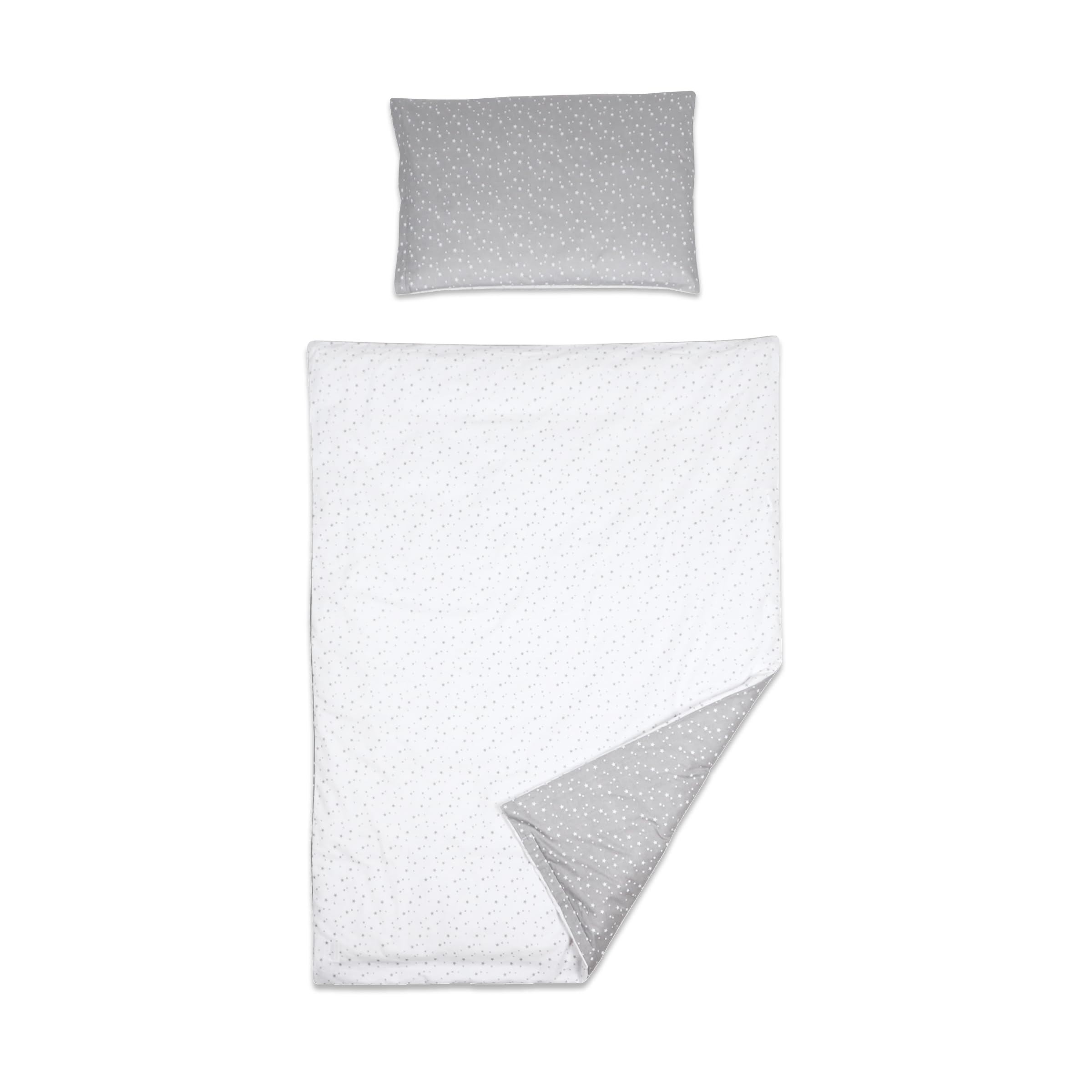 Perfect for your baby's first bedroom. Designed to fulfill your little one's needs, safety and comfort. This product is designed and manufactured in the EU. Made of 100% cotton (main fabric), approved by "Oeko-Tex Standard 100". Suitable for Cot Bed 140x70Set Comprises:1x Duvet Cover (135x100cm) 1x Pillowcase (40x60cm)Sizes are approximate (+/-3cm) You might also be interested in other similar BabyBootik products in different colours, patterns or embroidery. Please do not hesitate to browse through our pages or contact us to find our wide range of useful items for your baby.