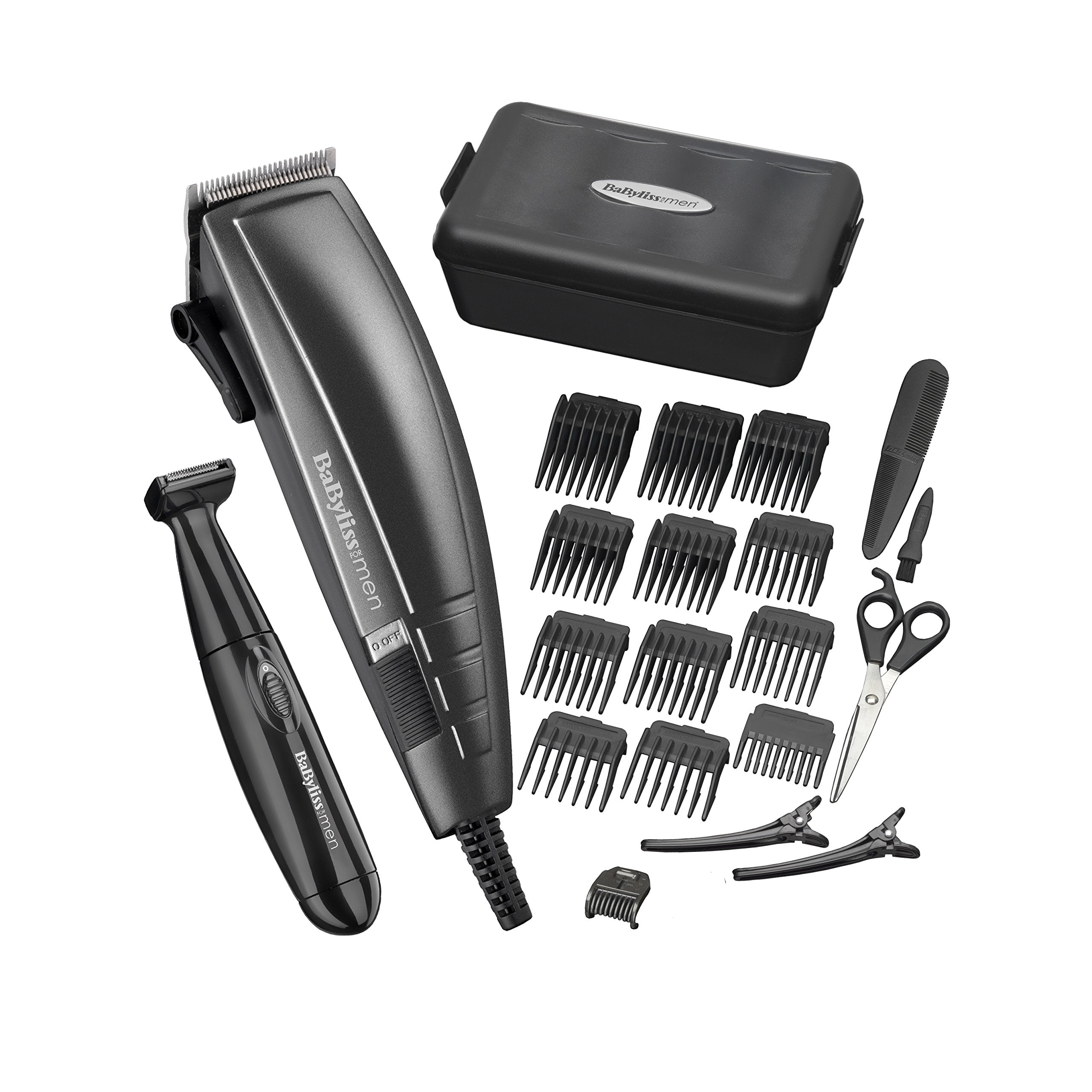 DescriptionProduct DescriptionBaByliss Pro Hair Cutting Kit for Men - Black.Box Contains1 x Clipper1x Battery Trimmer2x Sectioning clipsBarbers CombCleaning brushOilStorage case10 x Comb GuidesInformation Booklet.