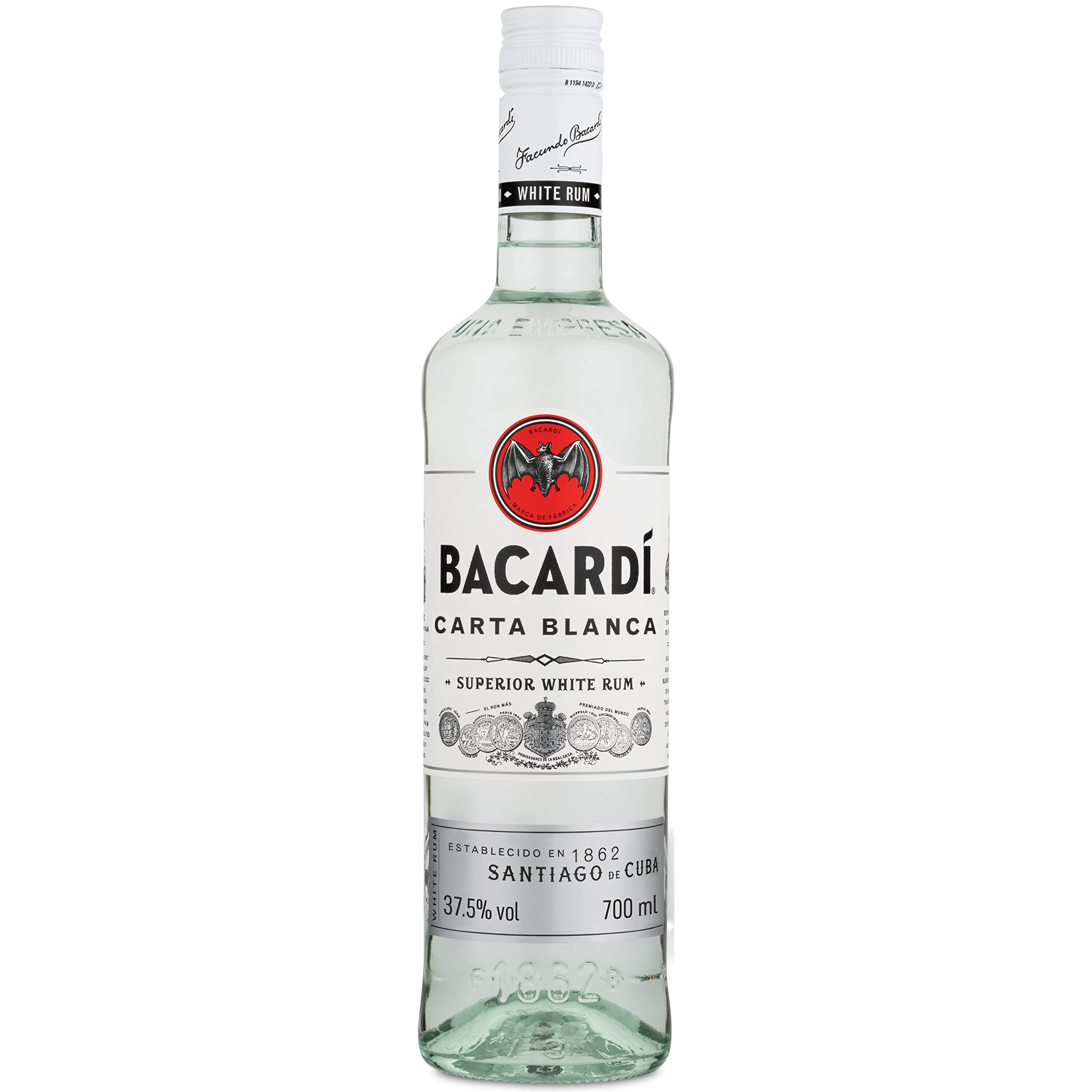 DescriptionProduct DescriptionBACARDÍ Carta Blanca is the iconic, Caribbean white rum that inspired a cocktail revolution, born out of a search for quality by Don Facundo Bacardí Massó. The secrets of crafting BACARDÍ Carta Blanca have been handed down from one master rum blender to the next since 1862. It also remains a key ingredient in some of the most famous cocktails of all time, including the Daiquiri, Mojito and Piña Colada. BACARDÍ Carta Blanca is dry and light with a fresh finish and notes of baked vanilla accompanied by bright citrus. After ageing in American white oak barrels, a secret blend of charcoals is then used to shape and sculpt the final rum, ensuring that no single flavour dominates its taste. Perfect for mixing, BACARDÍ Carta Blanca is just as perfect with juices, cola and ginger beer at home, at the heart of a refreshing cocktail in a bar or as an excellent rum gift for cocktail lovers. As a product of time, tradition and more than 200 checks for quality, BACARDÍ Carta Blanca remains an indispensable part of any bartender’s toolkit. As well as being the rum of the original Daiquiri and essential in achieving its famous balance, it has also inspired generations of famous drinks like the Mojito, Piña Colada, Mary Pickford, Daisy de Santiago and many others. As you’d expect from a rum maker with more awards for quality, consistency, taste and innovation than any other brand - over 1000 and counting - BACARDÍ Carta Blanca uses 100% sustainably sourced ingredients chosen for flavour and quality. It’s also Bonsucro® certified, which means the world’s highest level of sustainable sugarcane production, ensuring fair wages and conditions for sugarcane workers. Discover the perfect blend of taste and quality in a bottle that inspired a cocktail revolution, crafted in line with a tradition of smooth rums for a unique, unforgettable flavour profile.Safety Warningsytay away from eye contactManufacturer Contact InformationBacardi Martini Limited, 12 Francis Street, London, SW1P 1QN, United Kingdom
