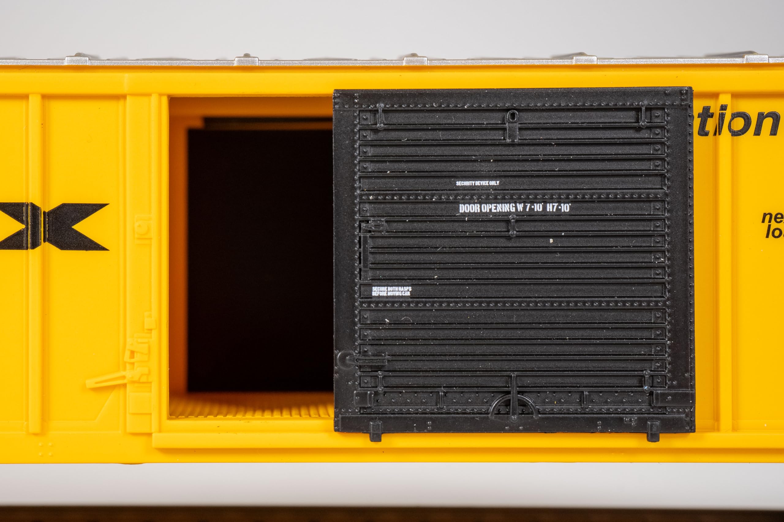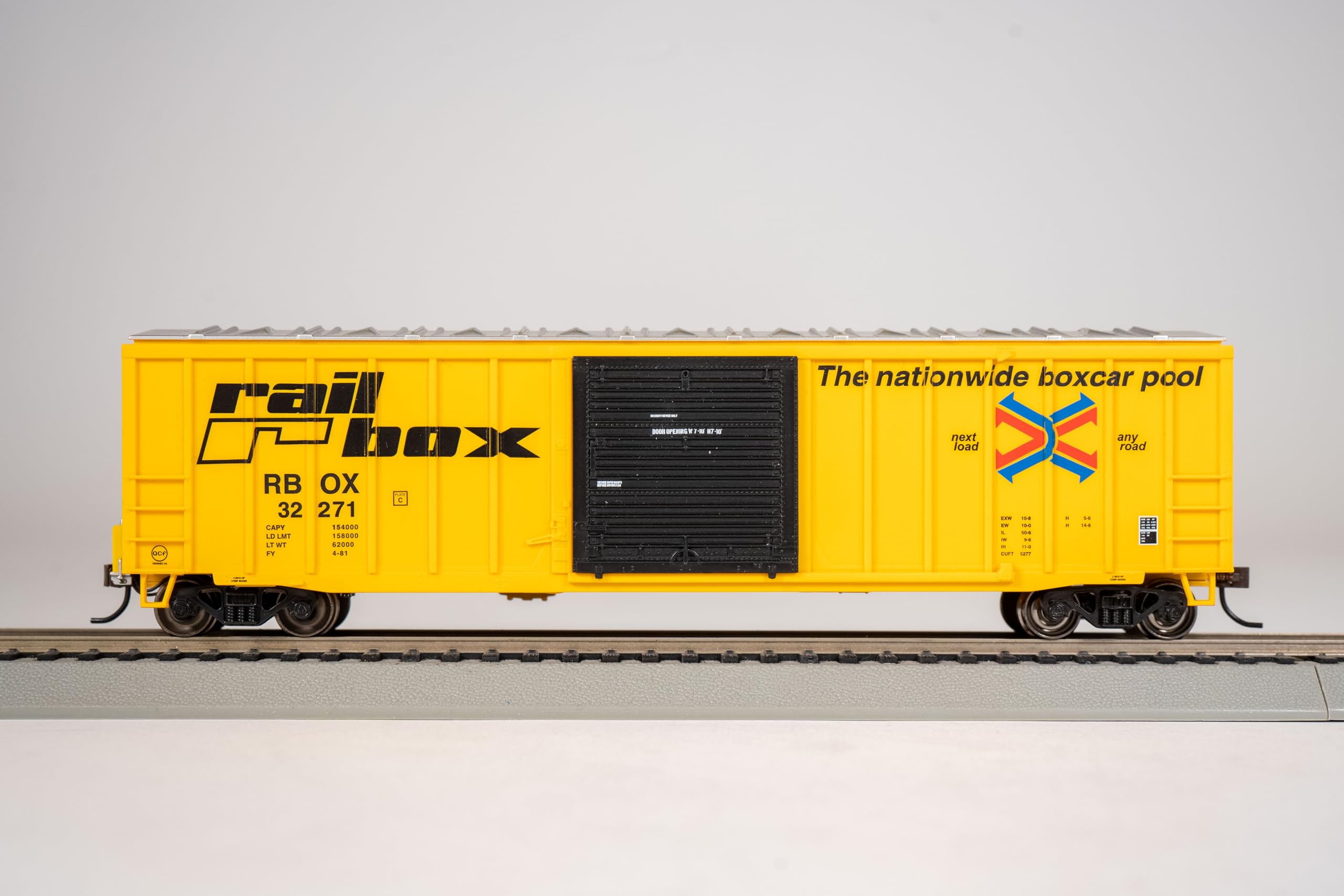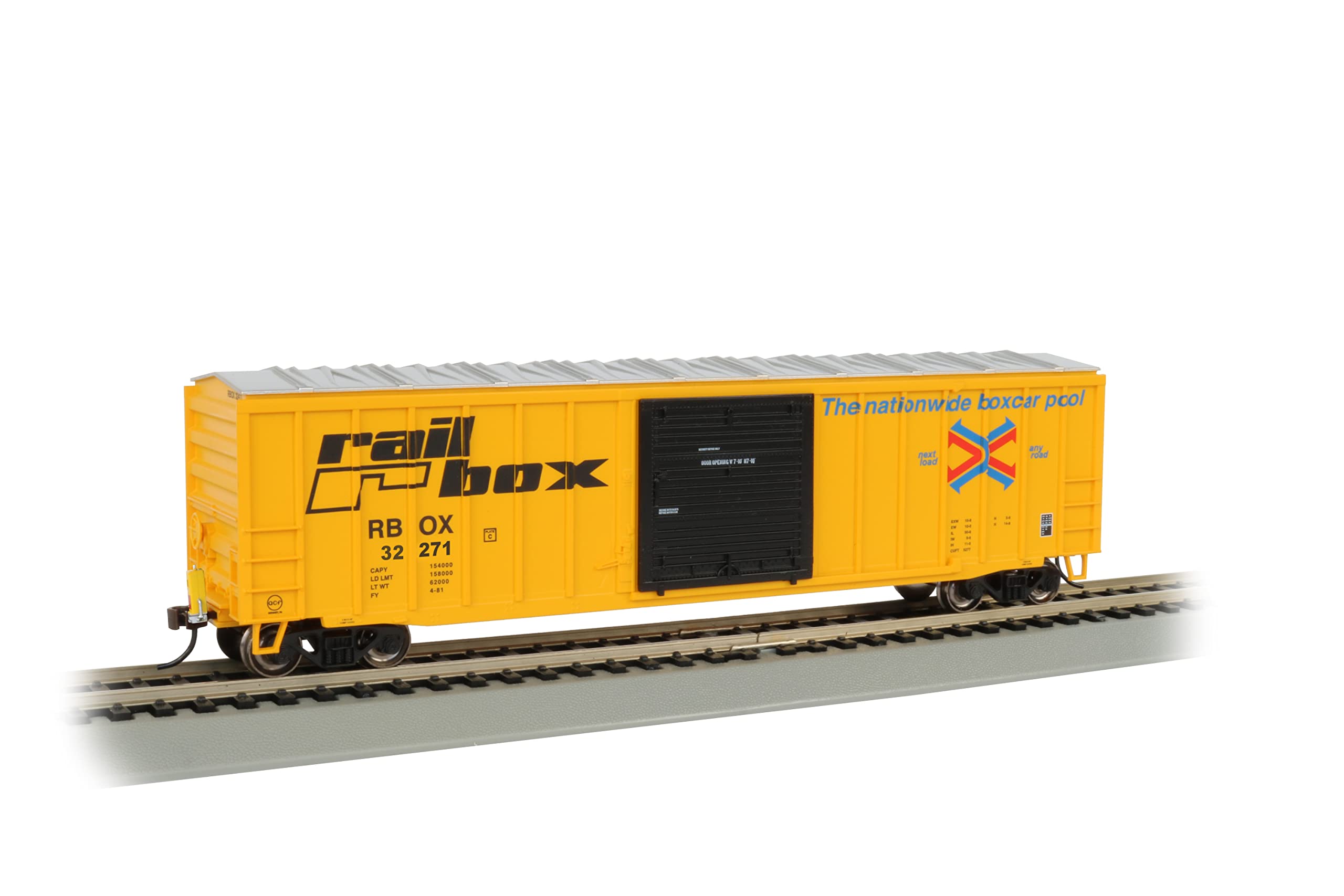 50' Outside Braced Box Car with Flashing End Of Train Device - RAILBOX - HO Scale. This Outside Braced Box Car comes equipped with a track-powered flashing red LED light (also known as a Flashing Rear End Device or FRED). Just attach the car to the end of your HO train for a modern finishing touch. Operates on both DC and DCC layouts. It also features an operating door, metal wheels, and E-Z Mate Mark II couplers. Bachmann also offers a separate End of Train Device that you can use to replace the rear truck/coupler on a variety of rolling stock.
