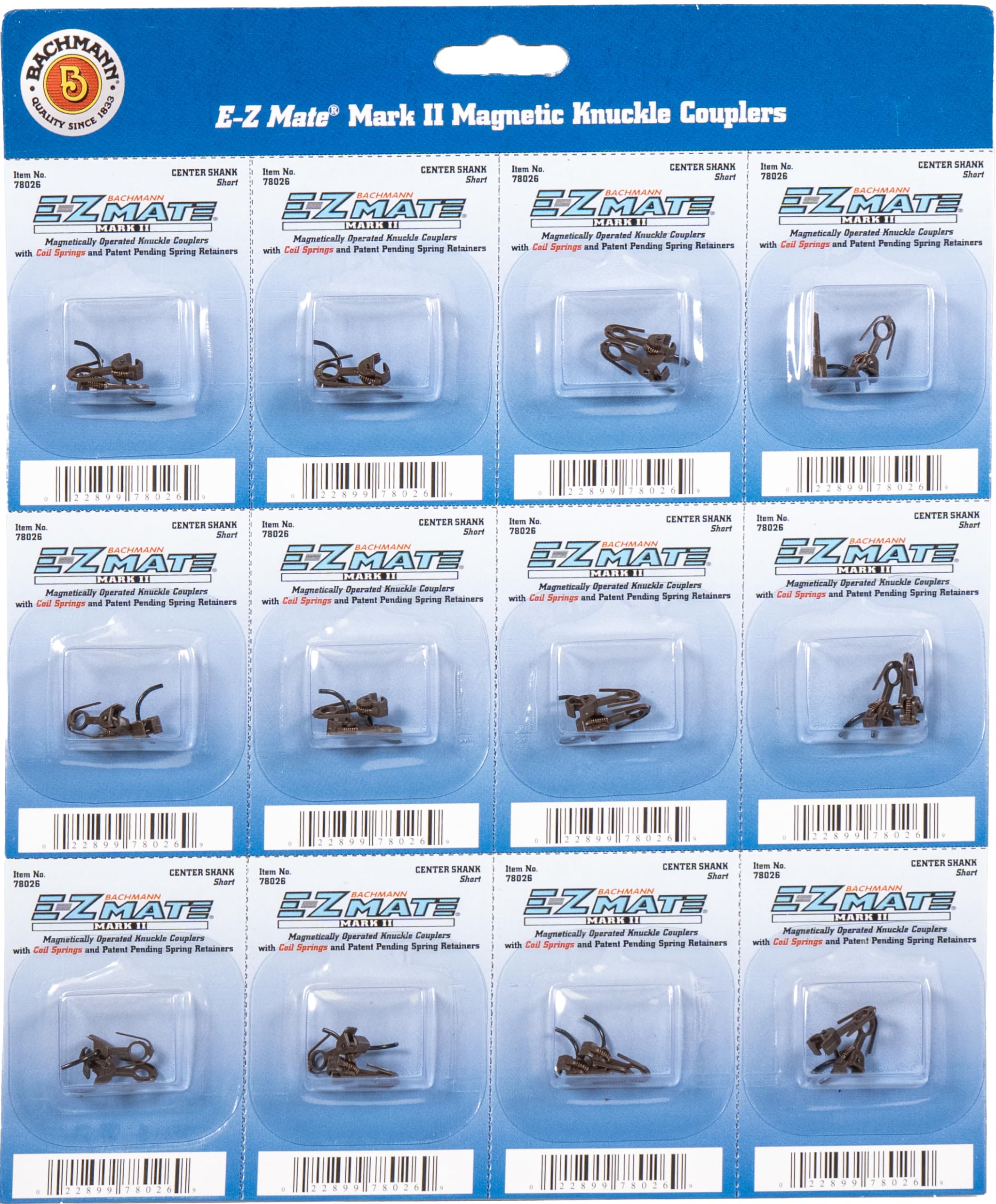 Product DescriptionCenter shank - short (12 pair/card) is compatible with all magnetically operated couplers currently on the market. Is of simple installation and integrated spring. Durable Construction and fits HO Scale Trains.From the ManufacturerCenter shank - short (12 pair/card) is compatible with all magnetically operated couplers currently on the market. Is of simple installation and integrated spring. Durable Construction and fits HO Scale Trains.