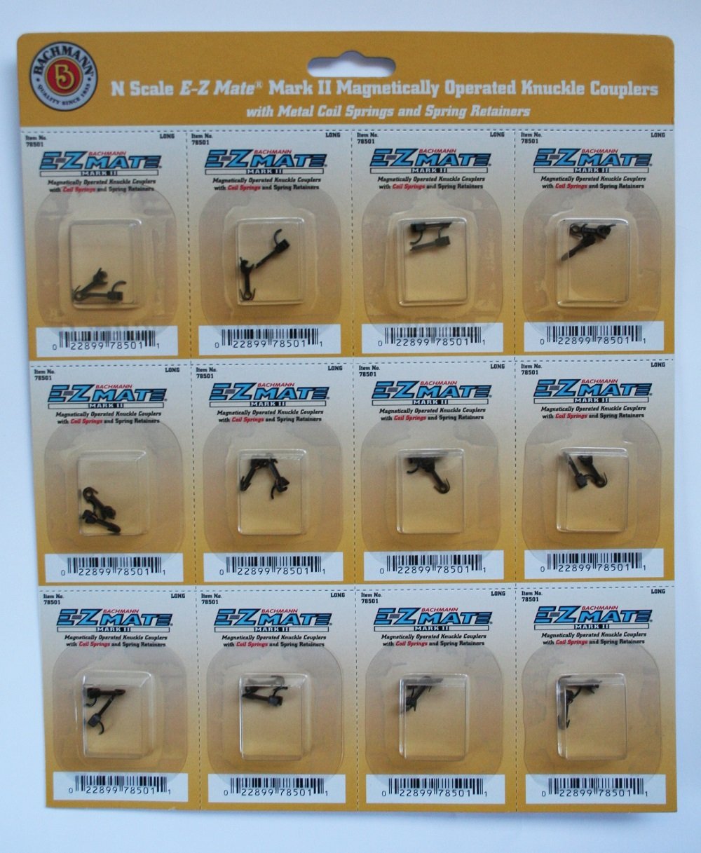 Product DescriptionMagnetically Operated E-Z Mate Mark II Couplers - LONG (12pr/card) N Scale Snaps Together, Stays Together on Floors, Tables and Carpets. No Nails, Screws, Or Special Tools Needed. N Scale - 1:160 - Conforms with NMRA (National Model Railroad Association) Standards.From the ManufacturerMagnetically Operated E-Z Mate Mark II Couplers - LONG (12pr/card) N Scale Snaps Together, Stays Together on Floors, Tables and Carpets. No Nails, Screws, Or Special Tools Needed. N Scale - 1:160 - Conforms with NMRA (National Model Railroad Association) Standards.