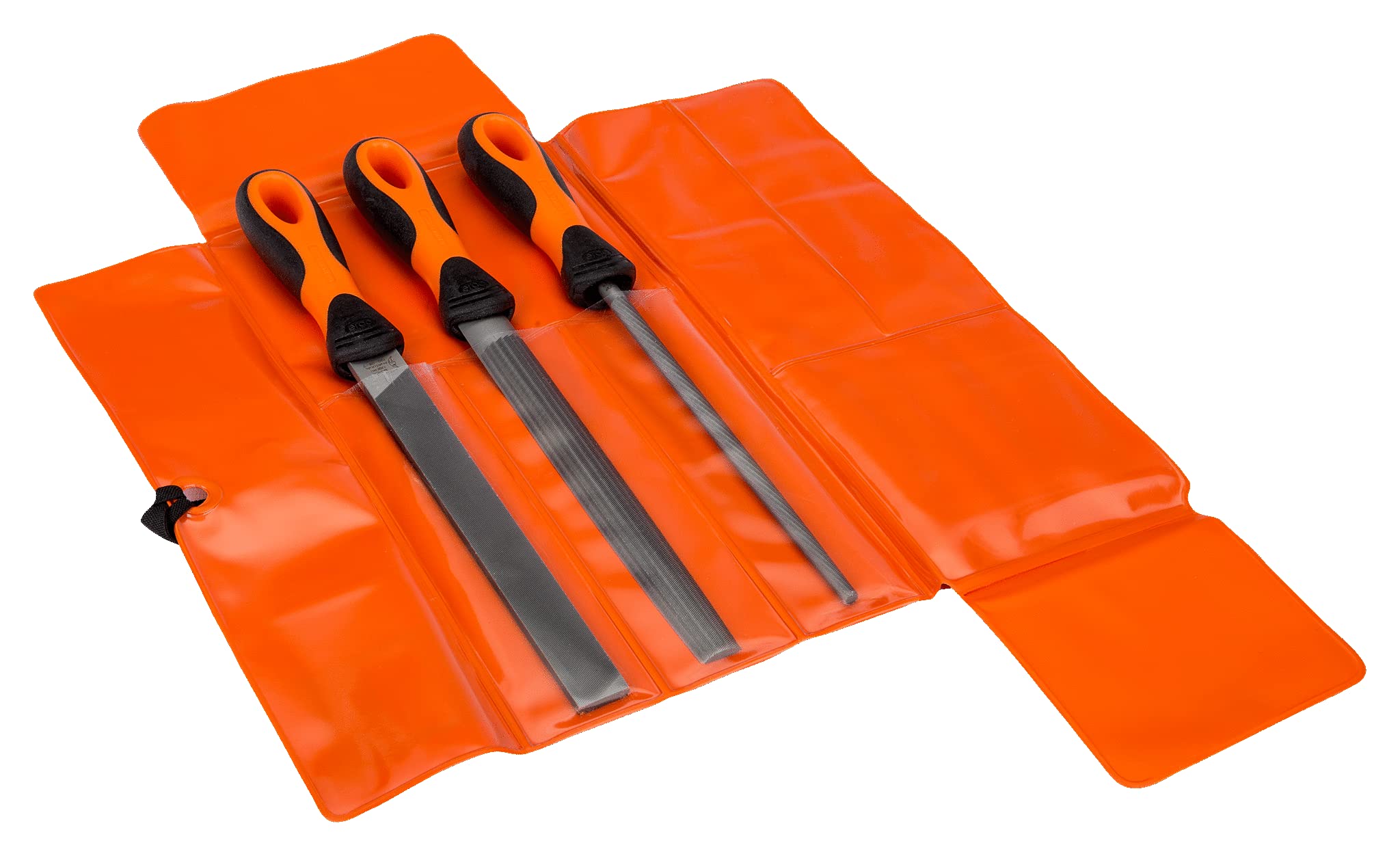 Product DescriptionMaximum comfort with minimal effort & ergonomic design. Comfortable two-component handle for excellent grip. Smooth cut for high time-wasting volume. Includes (once each): neck, round & Half-Round file. Carton packaging with roll-up bag. Cut: 2 = half size.Set Contains:1 x Bahco 1-473-08-2-2 3 8"HANDLED FILE,PLASTIC ROLL