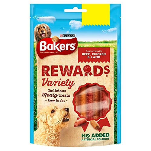 Delicious chicken meat sticks, beef and lamb flavor. Ideal for taking walks or rewarding your dog during training. Omega 3 and 6 to help maintain healthy skin and shiny coat, vitamins and antioxidants to help support na daily feeding up to: 7 kg: 2 pieces of 15 kg: 4 pieces of 30 kg: 6 pieces Please adjust the main meal accordingly. Fresh drinking water must always be available. Monitor your dog when giving it pleasure