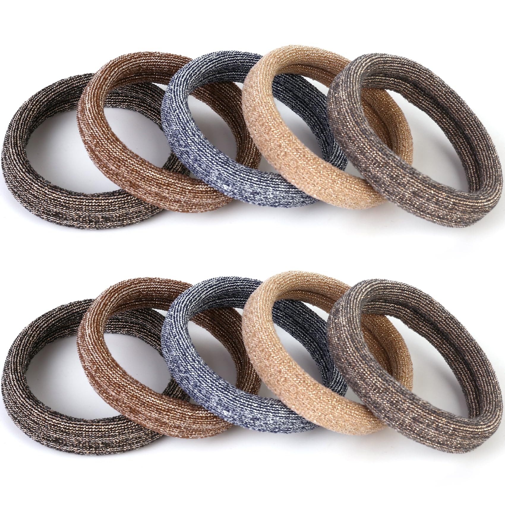 Product Specifications: Material: elastic spandex and nylon and gold thread Quantity: 100 pieces Width: 0.4 inch (about 1 cm) Diameter: 2 inch (about 5.0 cm) Color: 5 colors ,showed in pictures Package includes: 100 large elastic hair ties in a pearly bag Features: 1.Seamlessness - never hurt your hair 2.Strong stretch - always keep the hair firmly 3. Durability - saving your money 4.Easy match - suitable for all your dress and hairstyles 5.Widely use - appropriate for any people (girls,women,men and so on) with thick hair Note: Keep far away from babies and chemical goods to avoid accidents