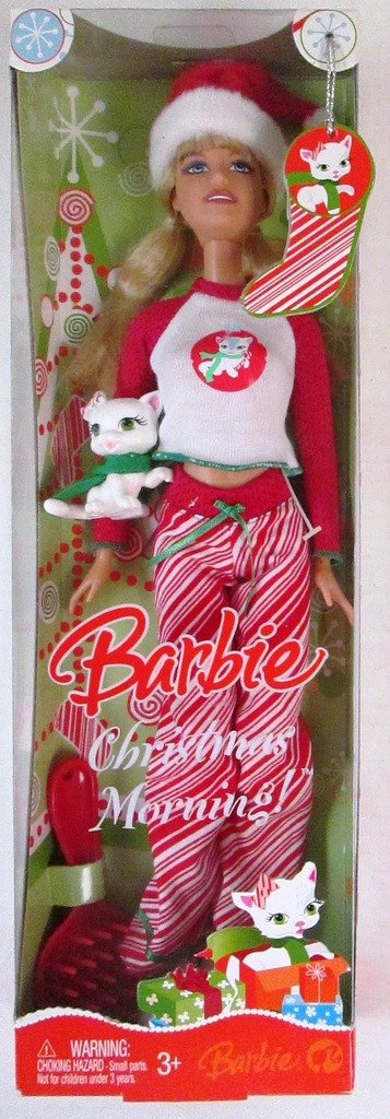 Barbie Christmas Morning Holiday Doll 2008 with Santa Hat, Pajamas, Fur Slippers, Hairbrush and Pet Cat
