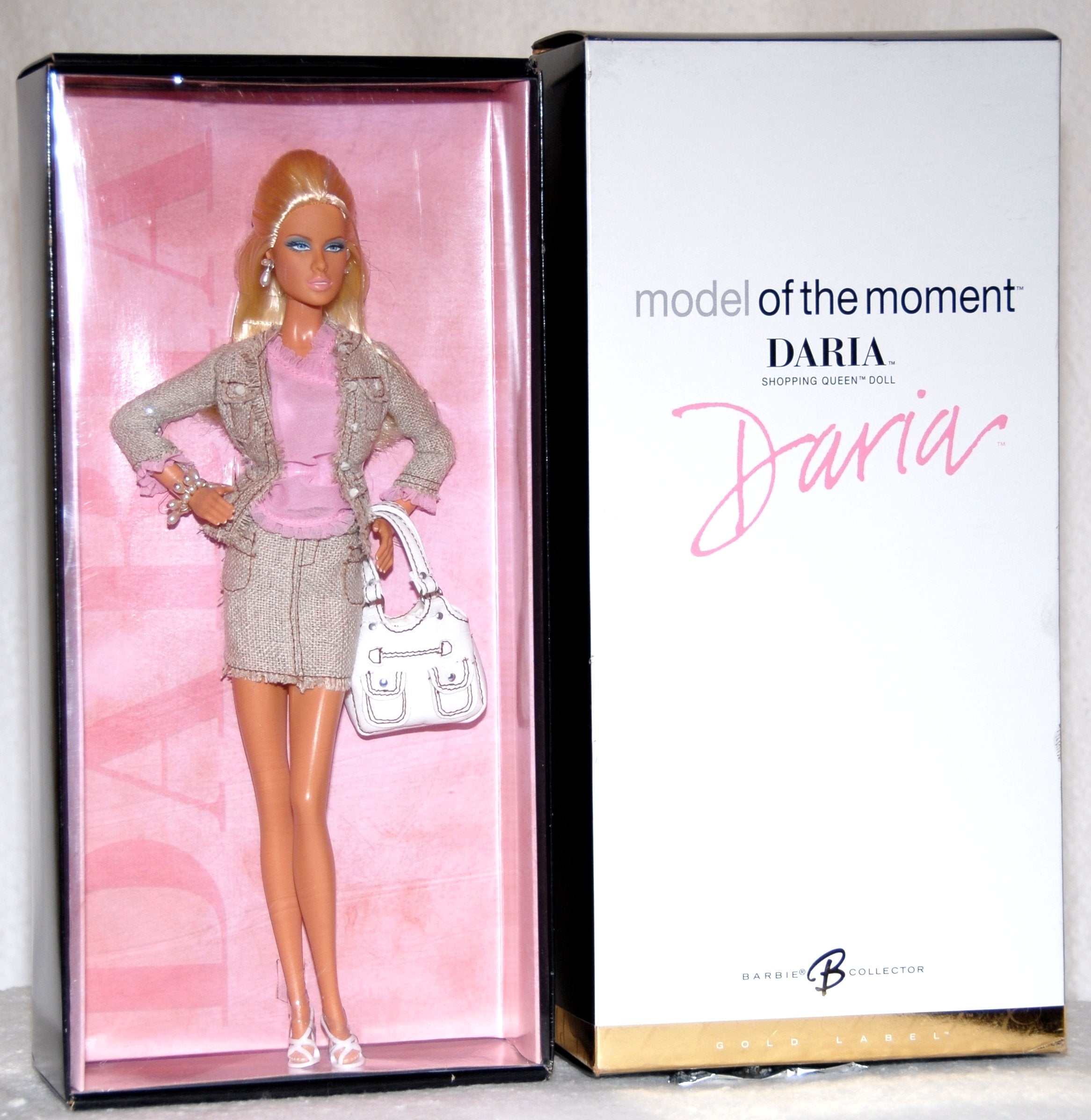 The Model of the Momentâ„ Collection continues with Dariaâ„ Shopping Queenâ„ doll - featuring the beautiful ModelMuseâ„ body sculpt. Dariaâ„ wears a chic, coordinated ensemble, consisting of matching tan woven skirt and jacket. The pink chiffon blouse is a bright contrast. Strappy sandals, white leatherette purse, earrings, and bracelet lend sophisticated charm.