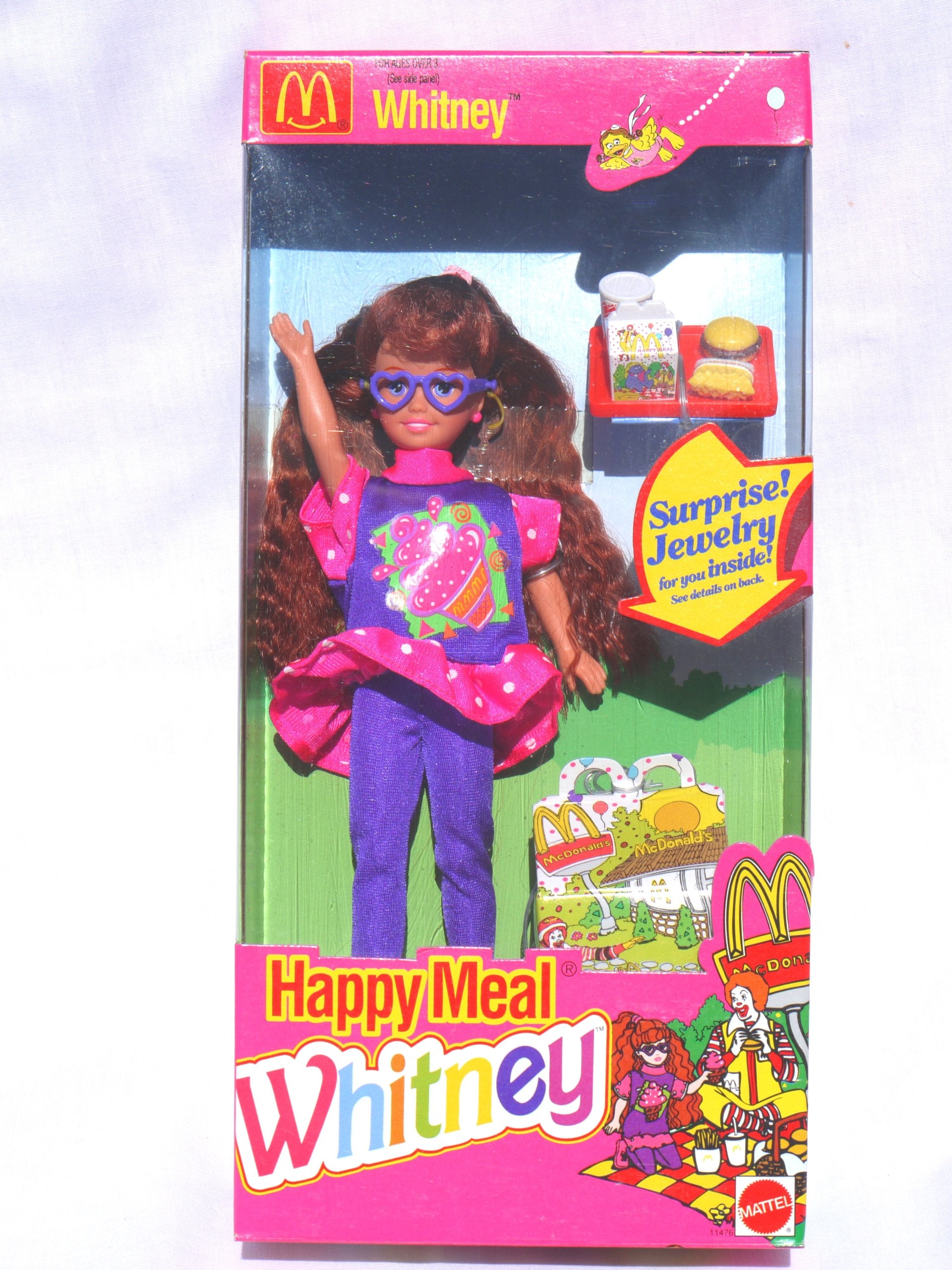 Barbie HAPPY MEAL McDonald's WHITNEY DOLL w HAPPY MEAL PACK, Tray, Burger & Surprise JEWELRY (1993)