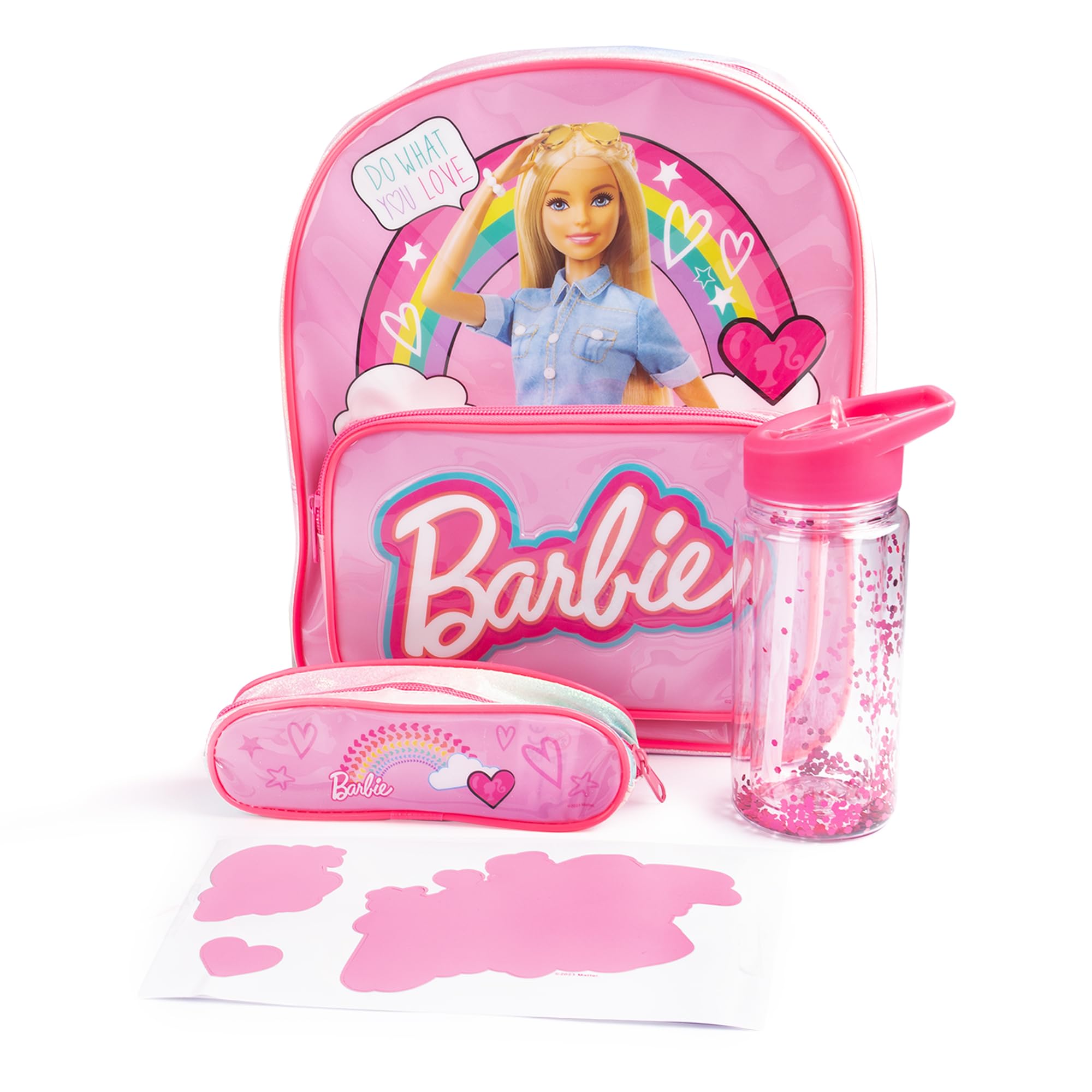Make Your Little Barbie Girls Back To School Experience Even More Special With This Adorable Barbie School Backpack Set - Girls Backpacks - This Set Includes: 1 x Small Backpack Perfect For Toddlers And Young Girls Over 3, 1 x Matching Pencil Cases, 1 x Scratch To Reveal Kids Water Bottle With Straw. The Backpack Features A Rainbow Barbie Design And Is The Perfect Size For Carrying All Of Your Child's School Supplies- Presents For 3 Year Old Girls - Girls Gifts - The Rucksack Is Also A Great Idea For Girls Birthday Presents Or Christmas Gift For Kids Who Love Barbie - Kids Backpack - This Cute Backpack Set Is Made With High-quality Materials And Is Designed To Withstand The Wear And Tear Of Everyday Use - Bags For School - Get Your Little One Ready For School With This Must-have Back To School Supplies Set - Toddler Backpack - The Versatile Back Pack Can Be Used As A Girls Swim Bag Or Kids Travel Backpack, With Enough Room To Carry All Your Barbie Stuff - Barbie Sets - Barbie Girl - Children's Backpacks - Your Little One Will Love Going To School With This Pink Kids School Bag - Accessories For Girls - Barbie Movie