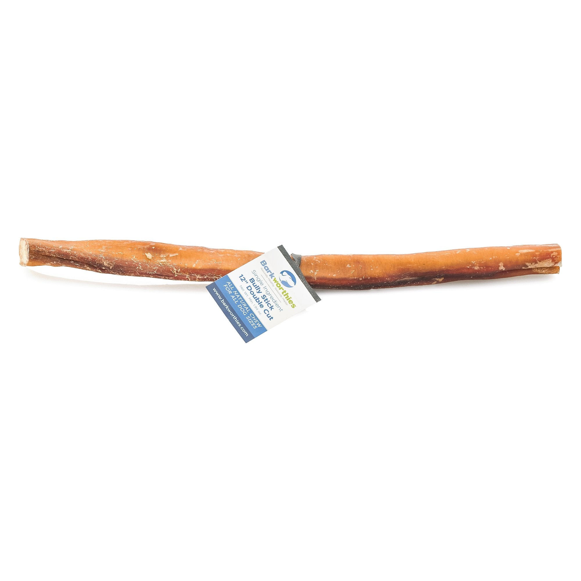 Thicker than our standard bully sticks, Barkworthies odor free double cut 12" bully sticks are a great way to give your dogs a chew they’re sure to love. These all-natural chews are naturally 100% digestible, making them a great alternative to a traditional rawhide. Dogs love the natural flavor - and you'll love the fact that they're virtually odor free! Barkworthies odor free double cut 12" bully sticks are made from free-range, grass-fed Brazilian cattle. Thanks to their unique shape and texture, these chews promote good dental health while helping prevent bad doggy breath. Please note that this product is not for human consumption. Please supervise your pet while giving a treat or chew. as With all of our products, Barkworthies are additive, chemical and preservative-free. Moreover, this is a single-ingredient product, which means it's 100% healthy and safe.