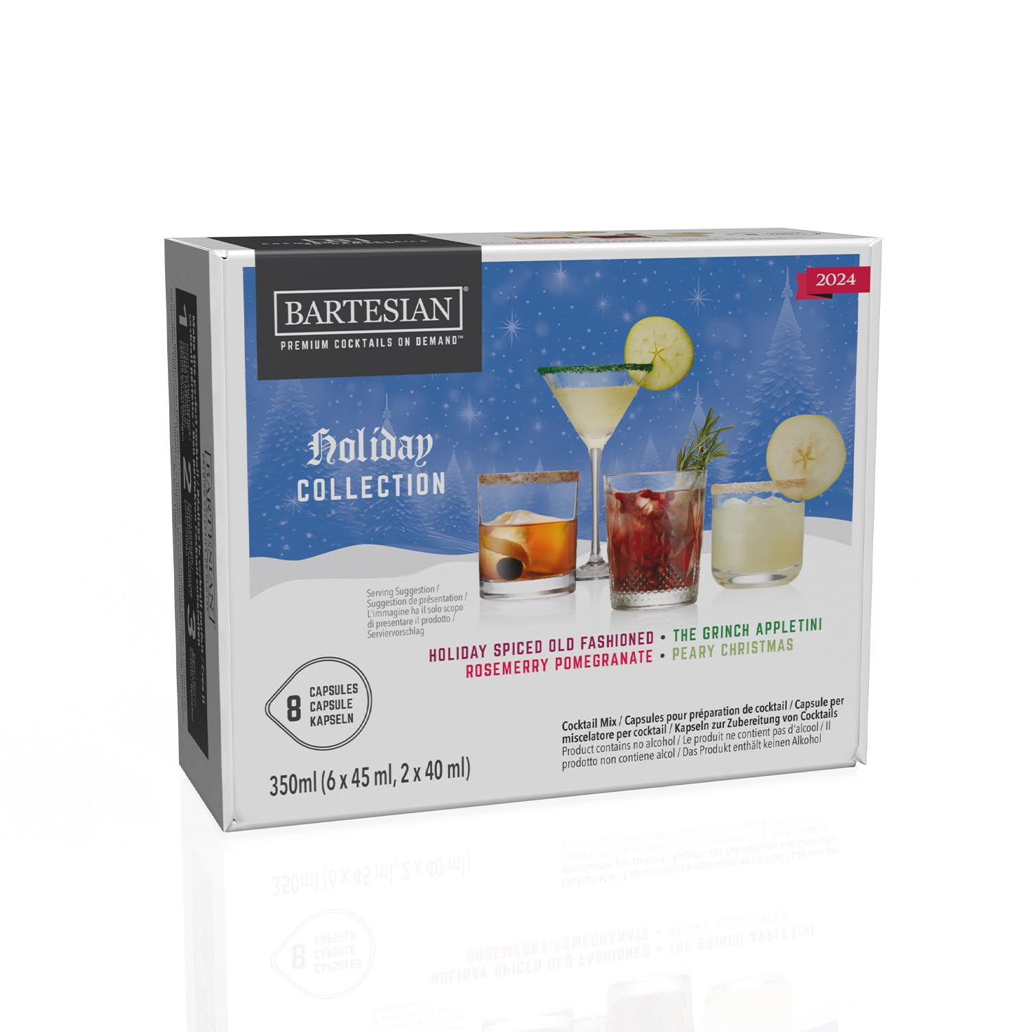 The best way for you and your holiday guests to get in the spirit of the season is with this year’s Bartesian Holiday Collection. This limited-edition variety pack contains 2 each of 4 curated seasonal cocktails: Holiday Spiced Old Fashioned: a festive twist with flavors of orange, bitters, cinnamon, and holiday spices. The Grinch Appletini: shimmery and sweet with crisp, tart green apple flavor. Rosemerry Pomegranate: a sweet blend of jammy pomegranate and herbal rosemary flavors. Peary Christmas: an elegant tequila cocktail with sweet pear, citrus, and delicate almond flavors.