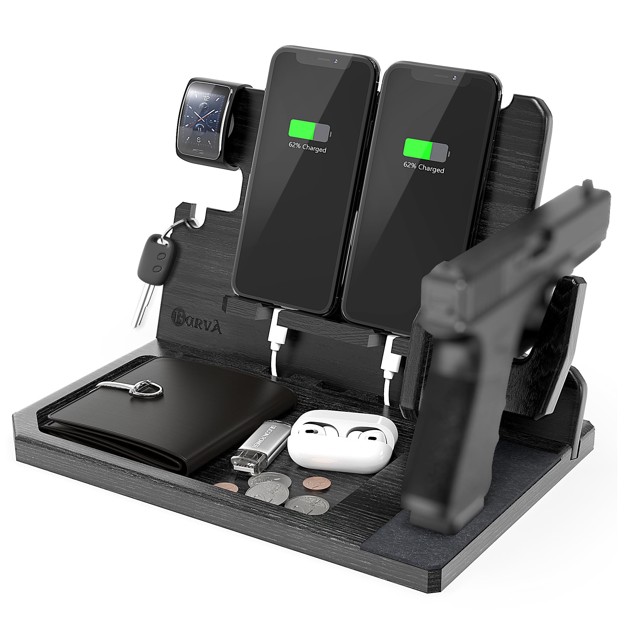 ORGANIZE No more digging around. It's right there when you need it most EASY TO INSTALL No tools are required NATURAL ASH WOOD Made in Ukraine for a classy look that complements any home desk The Multidevice Charger Dock is compact enough that it won't take up a big footprint but is large enough to hold multiple units. The vertical piece has two phone stands and comfort base to catch men's stuff. The horizontal layer has multifunctional compartments for coins, business cards, watch cases, or other devices that clutter work area The Catchall Tray is a must have for small spaces. Key tray for foyer, hall table. There are hundreds of jobs for this aesthetic, modern Ukrainian product. Everyday carry tray for quick access to all pocket items. Male smartphone stand, change holder If you’re looking for a useful thing everyone will love, this is it! Gift sets for New Year. Happy Bday. Friendship, sympathy, gratitude, relationship, graduate, personal, retired, house warming gifts. Thanksgiving, Feliz Dia del Padre, Xmas, Easter, Vday presents. Masculine husband gifts, bf gifts, papa gifts, brother gifts, grandpa gifts, boss gifts, friend gifts. Great couple gifts, bff gifts, custom gifts, personalized gifts, long distance gifts. appreciation gifts, Best pop, grandfather, daddy, groom, senior, pappy, novio, stepdad, nephew, manager, fiance gift ideas. Thank you, Valentines day, promotion, grad, college gifts. Ring tray nice looks near nightstand lamp, bedside clock. Desktop storage is a good choice for apartment organizing furniture. Ebony desk organizer, wood basket, dump tray, handmade supplies. bed caddy. Smartwatch charging stand. Son in law drawer organizer, desk caddy. Man cave desk necessities. Shelf organizer, bathroom organizer. Tabletop mobile accessories black tray. Mesita de noche bandeja negra. Inspirational gifts from wife, mom, daughter, girlfriend, woman, sister, niece. Solid and practical utility for any event Enjoy with unique style!