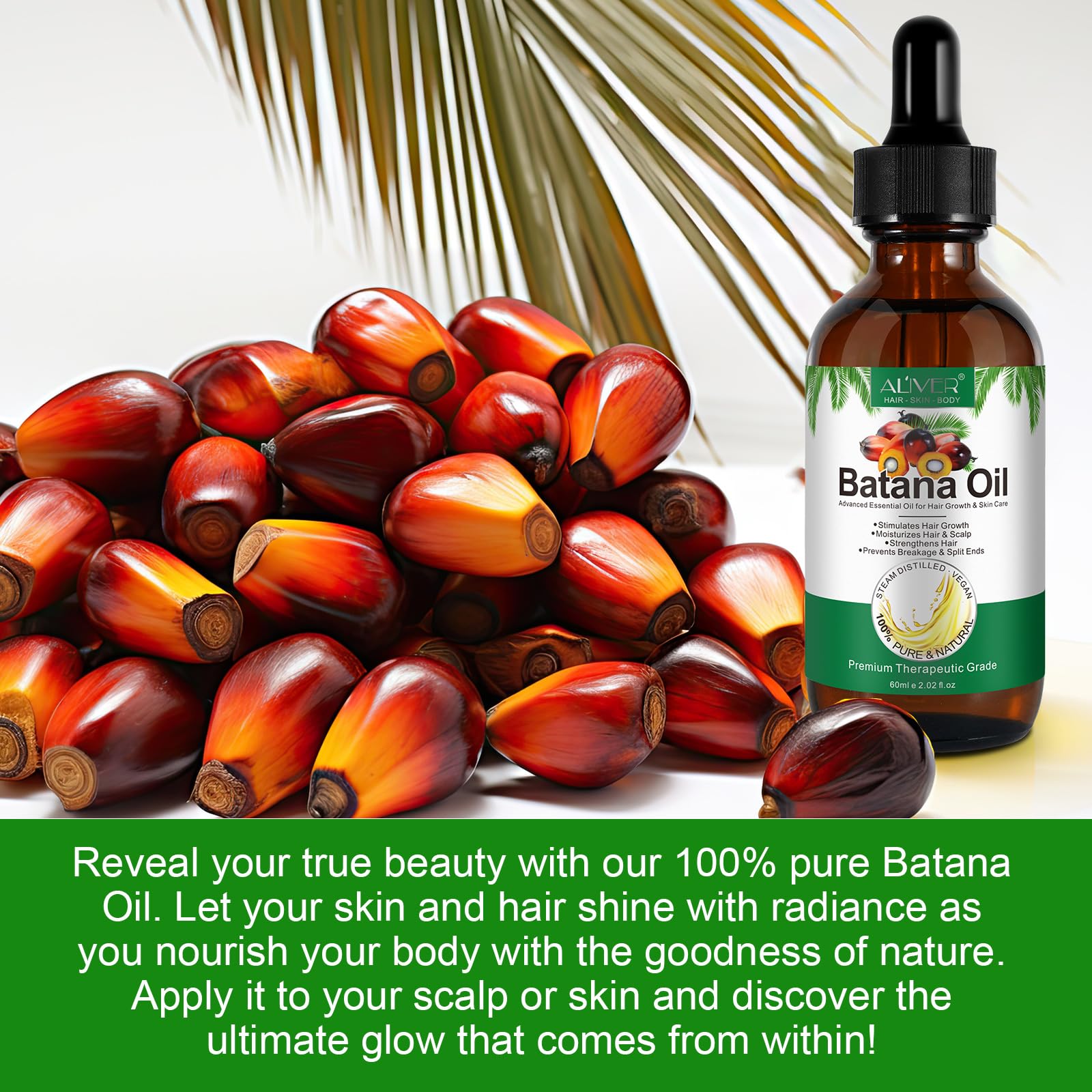 Batana Oil for Hair Growth, Natural Batana Oil, Prevents Hair Loss, eliminates Split Ends & Increases Shine, Batana Oil for Healthier, Thicker, Fuller Hair 60ML