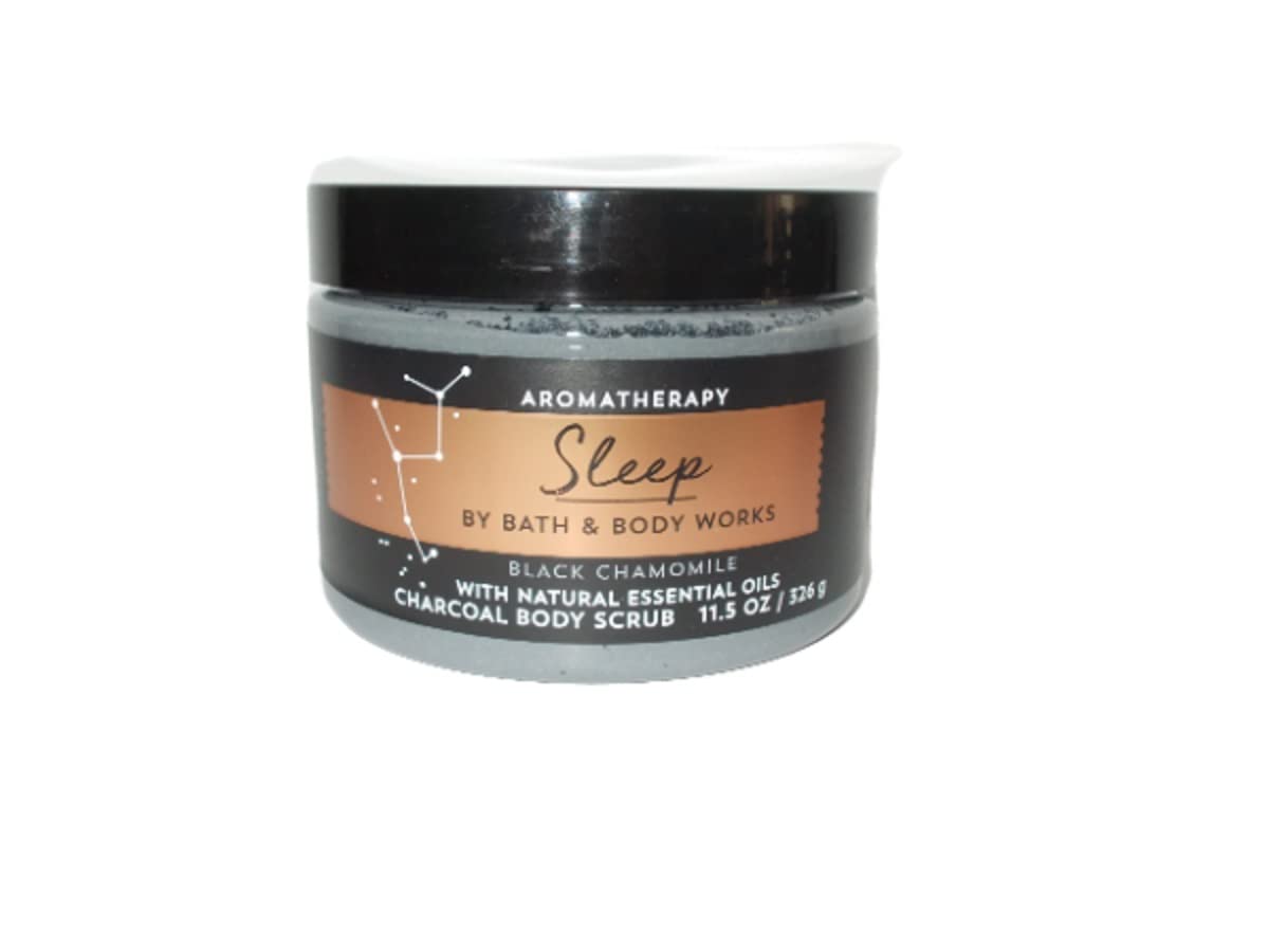 Bath & Body Works Aromatherapy Sleep Black Chamomile Charcoal Body Scrub with Natural Essential Oils 11.5 oz / 326 g. Aromatherapy Tip: Massage gently over skin during a shower or bath whenever you need a pick-me-up. Rinse well. Breathe deeply for best results.