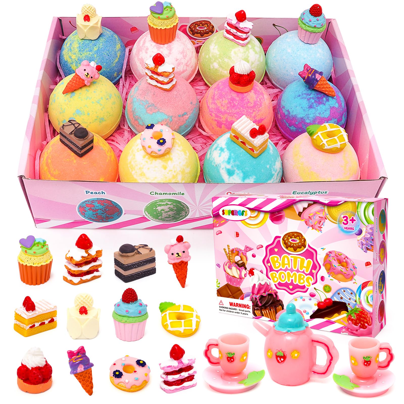 Bath Bombs for Kids Bath Bomb Gift Set Natural Bubble Bathbombs Fizzy Spa Bath for Kids Girls Birthday Valentines Day Gift