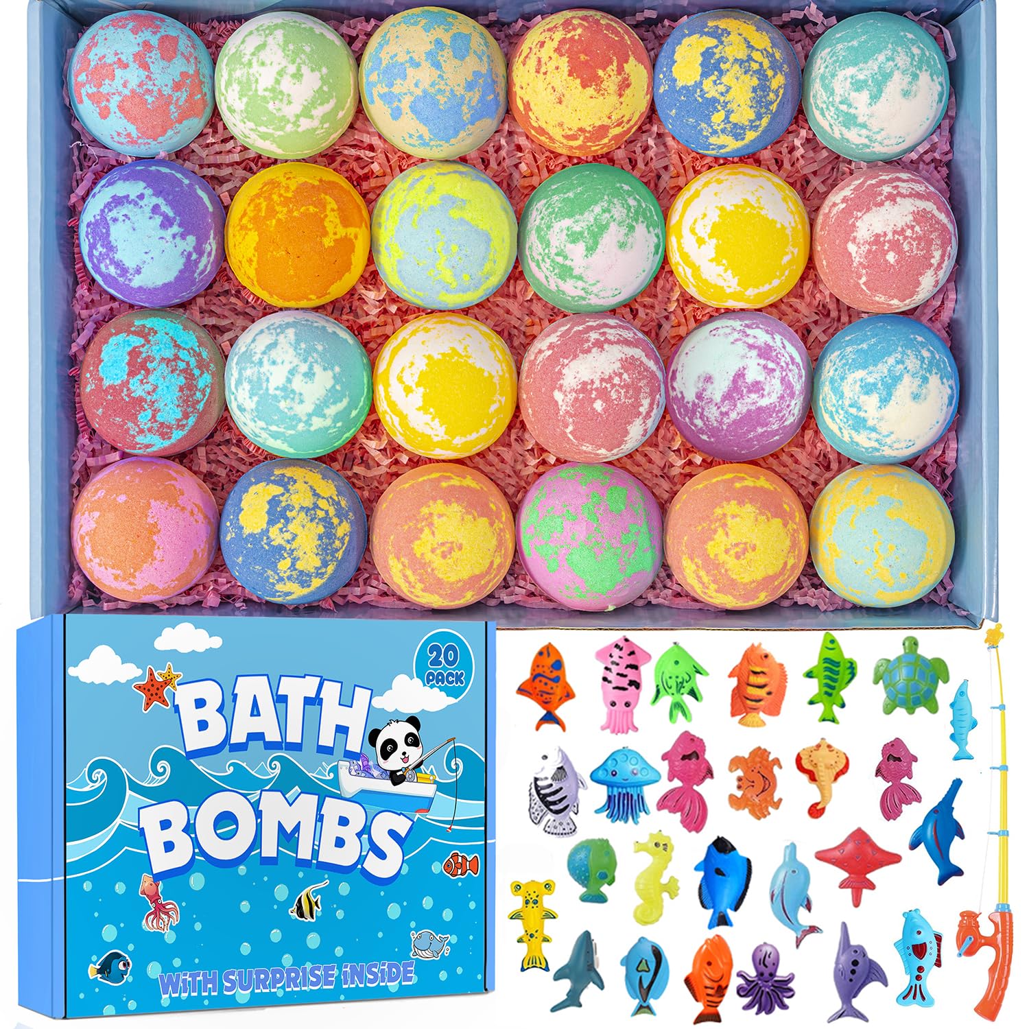 Bath Bombs for Kids with Surprise Fishing Games Inside for Girls Boys - 20 Kids Bath Bombs Gift Set, Handmade Bubble Bath Fizzes Bomb for Chrildren Birthday Christmas and Party Favor Gift for Boys