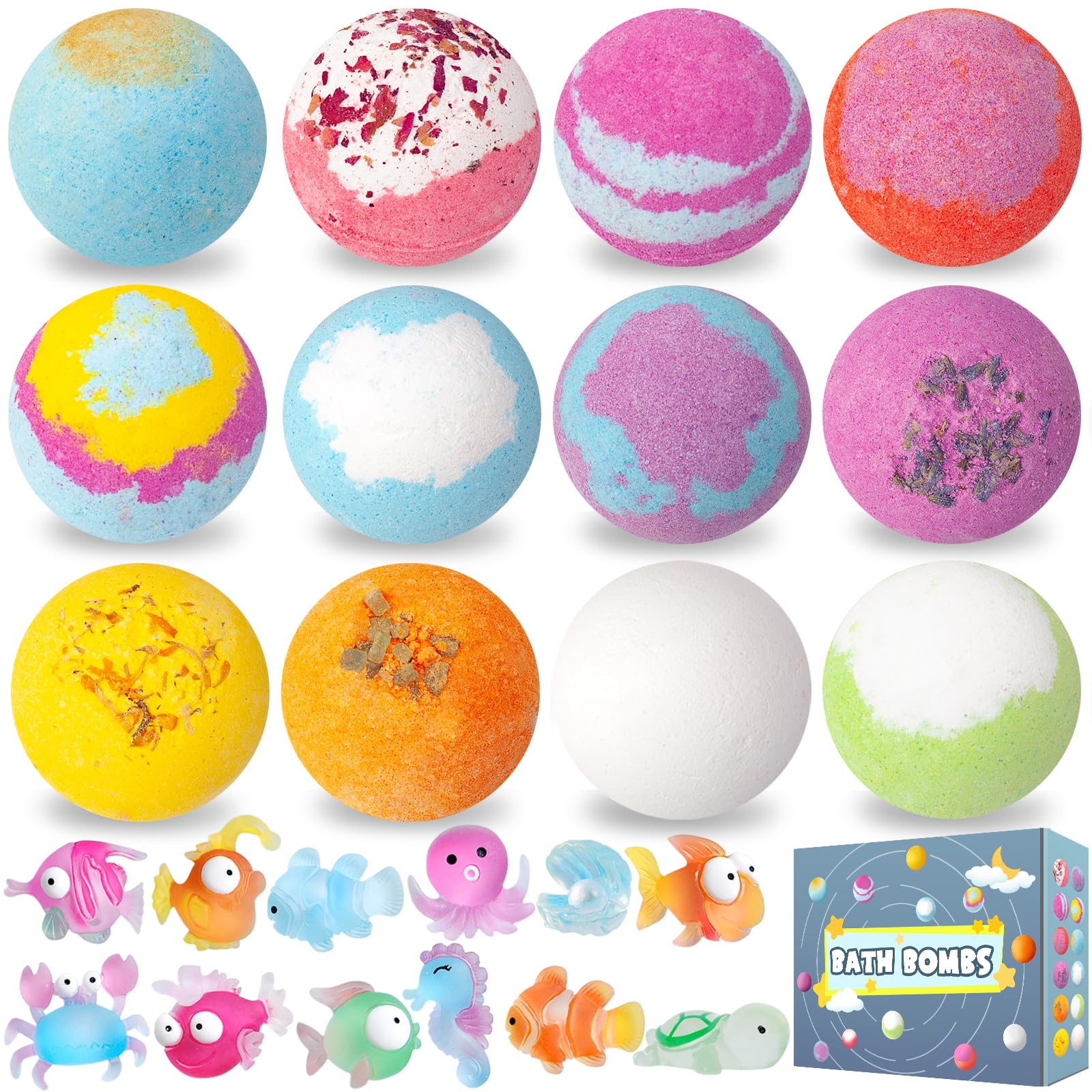 Bath Bombs for Kids with Surprise Toys Inside, 12 Pack Essential Oil SPA Bath Bombs, Bubbles Gentle and Safe Fragranced Bath Balls, Halloween Birthday Christmas Gifts Set for Kids Boys Girls