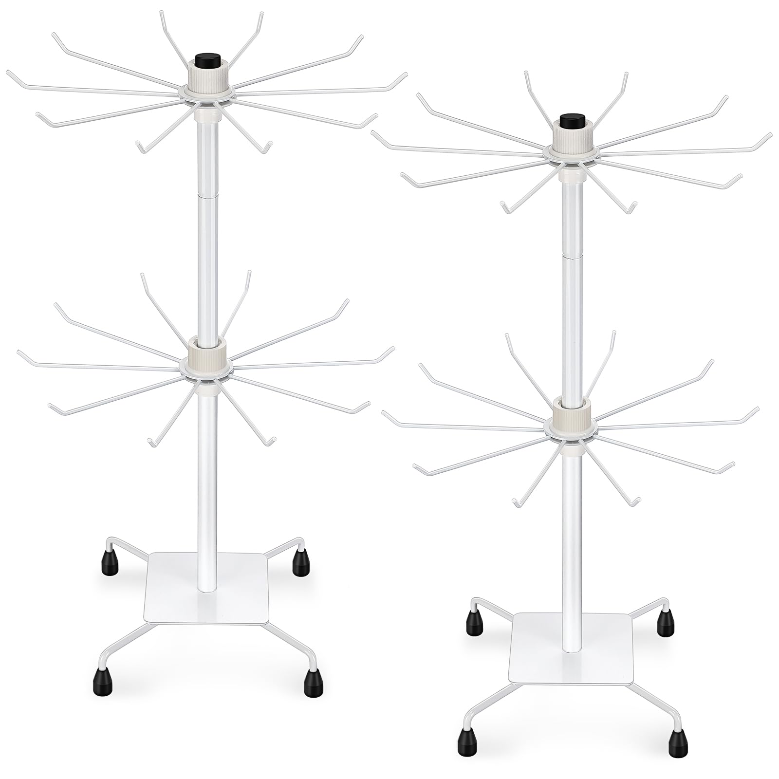 BBTO 2 Pcs Rotating Display Stand Jewelry Display Rack with Hooks Metal Earrings Display Stands for Selling Necklace (White,2 Tires)