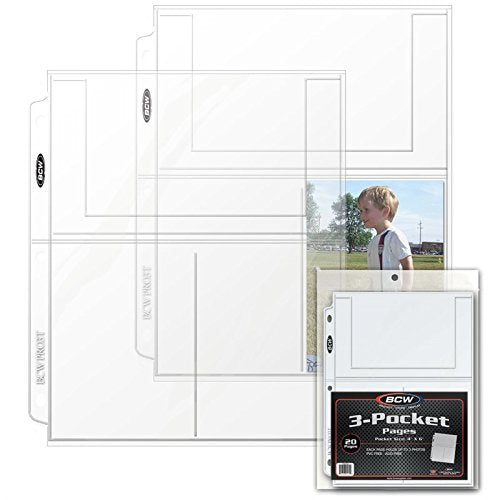 The BCW Pro pocket page is an acid free Archival quality product that is perfect for storing 4x6 photographs or postcards. This product features high-clarity polypropylene and top loading pockets with strong welds. BCW Pro pocket pages fit all standard 3-ring binders and albums. Use the 3 pocket page to protect, store, and display your collectible photos and postcards.