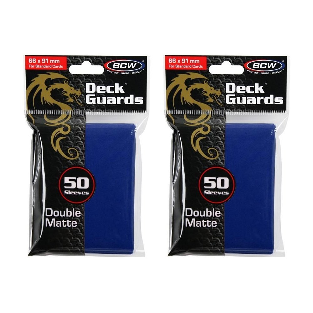 BCW Double Matte Deck Guard Game Card Sleeves Protectors are firm enough to protect your cards' corners while the matte finish makes them shuffleable and easy to handle. Clear matte front helps make your cards legible from across the table. Strong seams and sturdy material means you won't bow out before you're done. These card sleeves will turn heads as you crank up your game and tack another victory on your scorecard. Give your other sleeves the boot and tap into your unspent power in BCW's Double Matte Deck Guards. Acid-Free, archival safe. No PVC. Clear, non-glare, matte front & back. Designed to fit 2½" x 3½" game cards. Exterior Dimensions: 66mm x 91mm. Ideal for Gaming Cards like Magic The Gathering MTG, Pokemon, YU-GI-OH!, and more. 100-Count Total in Blue color.