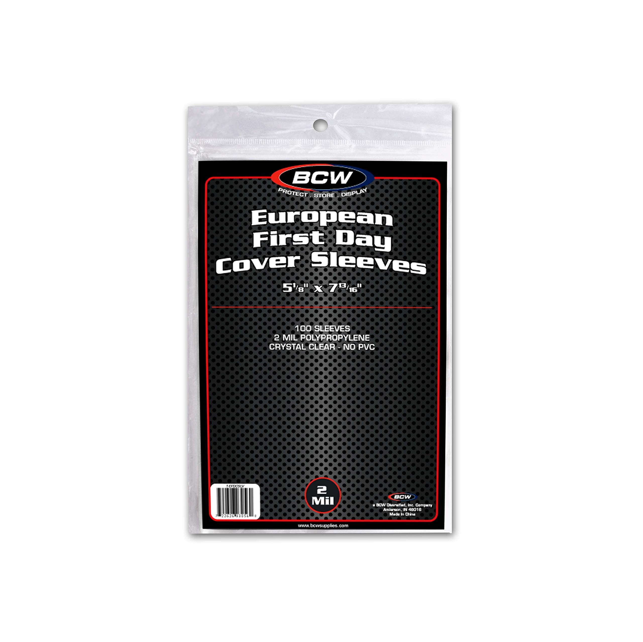 100 sleeves per Pack BCW European first day cover sleeve are an acid free, Archival quality product made of crystal clear polypropylene and are used to protect, store and display your first day covers. Sku: 1-EFDCSLV brand: BCW weight: 0.63 lbs