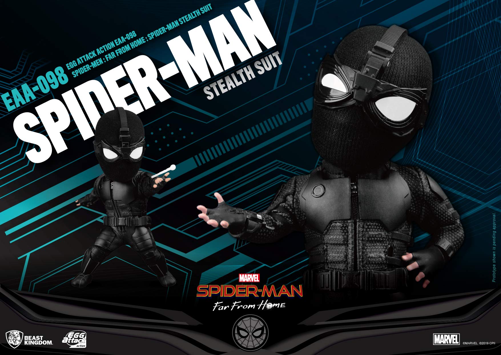 From Beast Kingdom. Emerging from the shadows to protect his dearest friends, Spider-Man is ready to save the day once again! Straight out of Spider-Man: far from home, Spidey's tactical styled stealth suit is brought to life in this 6-inch ea-098 Spider-Man stealth previews exclusive action figure! Featuring 26 points of articulation, The stealth suit is made from real cloth with PVC tactical details, Spidey's mask comes with alternate eyes for a variety of expressions! Along with multiple sets of hands and web shooting effects, this figure also comes with an unmasked head featuring a likeness of actor Tom Holland!