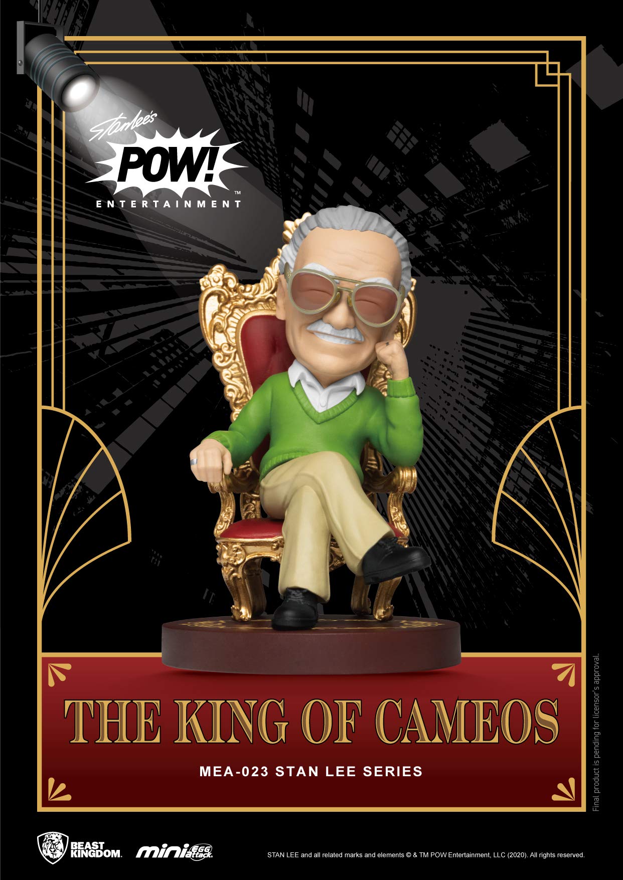 From Beast Kingdom. Beast Kingdom's range of renowned 3-inch Mini Egg Attack (MEA) series is back with the main-man and father of Marvel himself, Stan Lee! Whether walking the Hollywood red carpet, holding his infamous, signature ink pen, or sitting atop a throne fit for a king, the MEA series introduces three unique mini figures fit for any fan. As an update for collectors of the MEA series, the latest releases are enlarged in size, giving more to love for any fan!