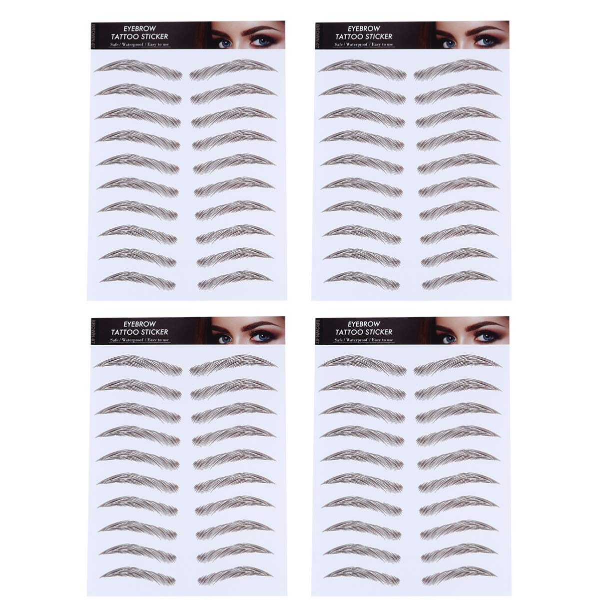 Beaupretty 4 Pcs Eyebrow Tattoo Sticker Temporary Eyebrow Tattoos Eyebrows Tattooed Waterproof Eyebrow Transfers Stickers for Women Men (Brown 1)