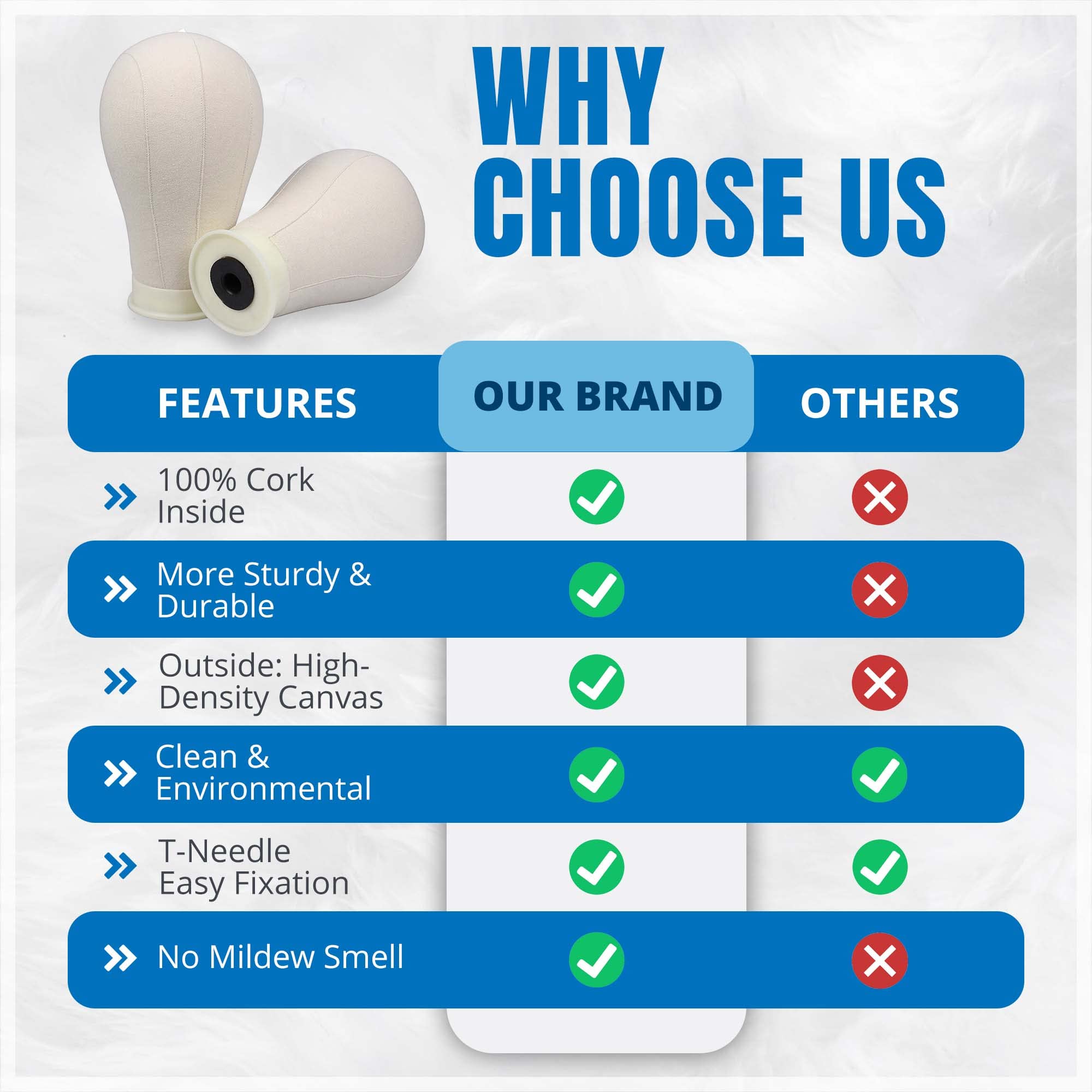 Each canvas wig head is fitted with a round mounting hole at the base which you can fit your tripod stand or clamp holder into. The hole measures 1-inch in diameter so you won’t have any trouble with compatibility regardless of the stand that you choose to use. Using a stand with the head is highly recommended so as to provide stability while wig making as well as allowing you to turn the head in any direction.