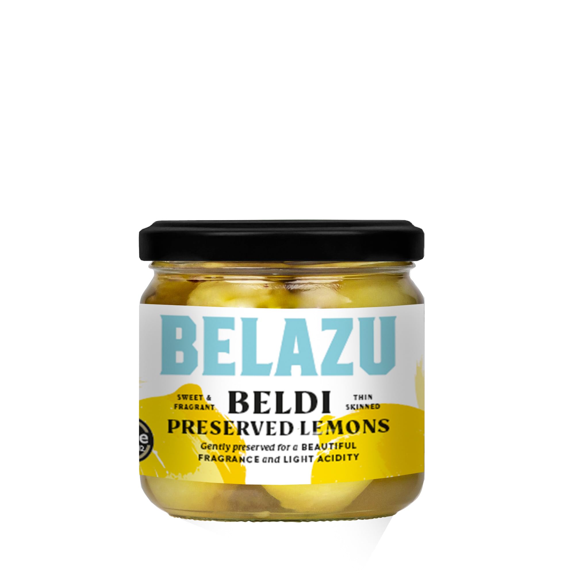 DescriptionProduct DescriptionOur small, fine-skinned, preserved lemons bring a beautiful fragrance to a wide variety of dishes. Our Beldi Lemons are hand sorted and graded for size and quality. They are then hand packed to ensure that the fruit does not bruise and retains its fragrant aroma. In 2012, our Preserved Lemons won 3 Great Taste stars from the Guild of Fine Foods, a coveted accolade awarded to fewer than 2 in every 100 entries.IngredientsPickled lemons (sulphites), water, salt.Manufacturer Contact InformationBeluza Ingrediant Company, 74 Long Drive, Greenford, Middlesex, UB6 8LZ.
