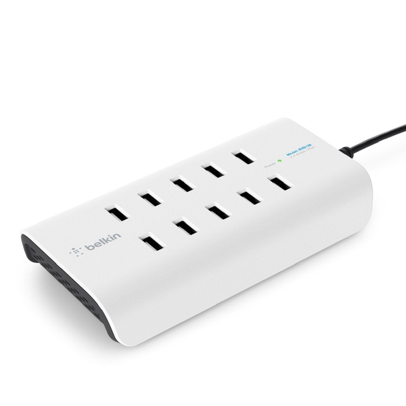 Product DescriptionConnected equipment warranty: If your devices are damaged by an electrical charge while properly connected to the charger, Belkin will repair or replace; only when shipped from and directly sold by AmazonPower for allCompact and convenient, the 10-port USB charging station provides optimal charging for any combination of smartphones, tablets or other mobile devices. Intelligent power delivery charges each device quickly and safely, up to 2.4 A per port with a total external power supply output of 120 W. Universal CompatibilityCompatible with all devices that can be charged via a USB-A cable, including tablets, smartphones, cameras, MP3 players, action cams and many other devices. Simply plug in any USB-A charging cable to one of the ports of the Rockstar 10-port USB charging station.Box Contains1 x 10-Port USB-A charging station1 x Power supply