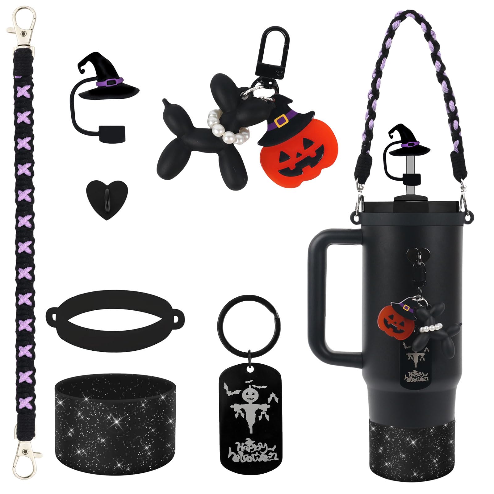 Stanley Cup Accessories Set, Bow Pearl Chain Braided Design Water Bottle Handle Strap, Silicone Stanley Cup Boot, Stanley Charms for Stanley Cup 30/40oz Tumble