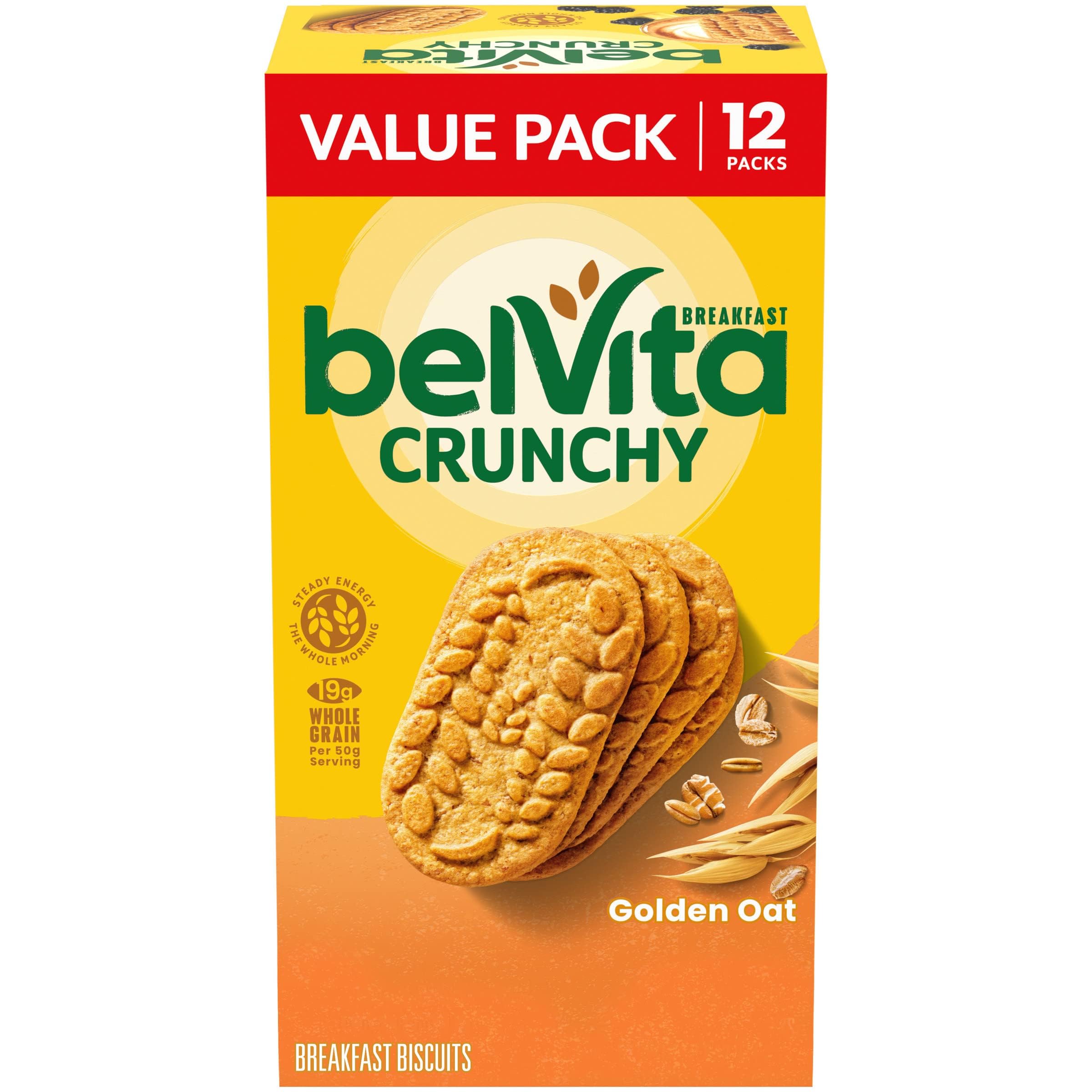 DescriptionStart your morning off right with lightly sweet and crunchy belVita Golden Oat Breakfast Biscuits. Specially baked, these bulk baked biscuits contain slow-release carbs that break down gradually in the body to deliver delicious, steady energy all morning long so you can enjoy these with your morning coffee, yogurt and fruit or as an instant breakfast food no matter what the morning brings. Each 50 gram serving of these bulk breakfast cookies contains 19 grams of whole grain, 2 grams of fiber and B vitamins. A simple addition to your morning, these cholesterol-free biscuits for breakfast contain no high-fructose corn syrup and no artificial colors, flavors or sweeteners. What are you waiting for? These convenient breakfast biscuits made with wholesome grains are a great alternative to traditional breakfast snacks. This bulk breakfast food is also an energizing alternative to snack bars and a wholesome addition to college care packages. Each individual snack pack contains four belVita Golden Oat Biscuits for you to enjoy on the go, at the office or at home for lasting morning energy.