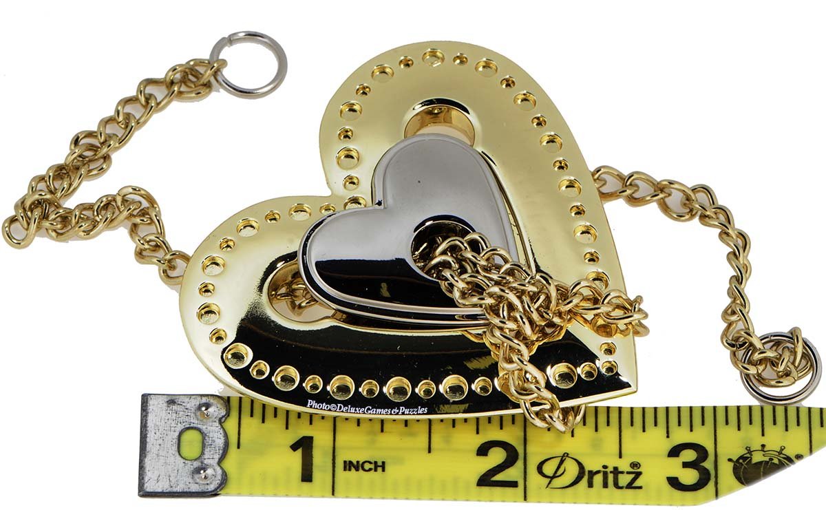 This puzzle stands for the tight bond holding together the hearts of lovers the world over. The first step is to free the gold and silver hearts from the chain. Once complete, you have to try your best to get them all back together. This puzzle, to be quite honest, is really tough. So. Here's to success in love and in puzzles! This is even the kind of puzzle that I would recommend trying with - Yes, you guessed it - a loved one.