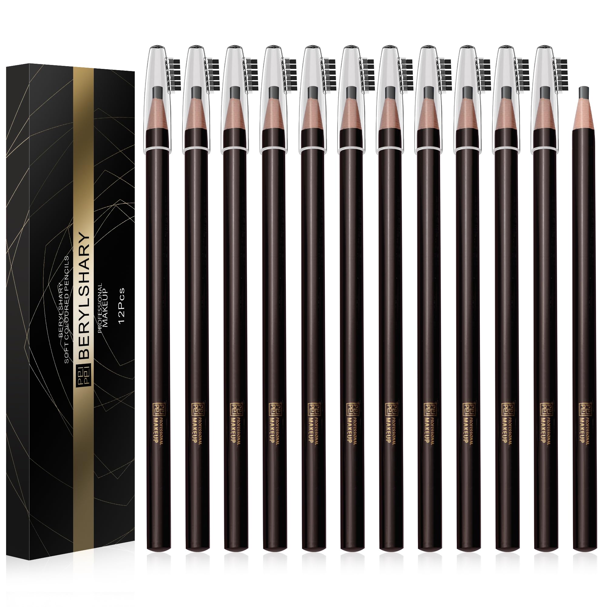 BERYLSHARY waterproof pull eyebrow pencil, 12 pieces, dark brown, light brown, black, sweat resistant, long-lasting and non discoloring, essential for beginners (12 PCS Light brown)