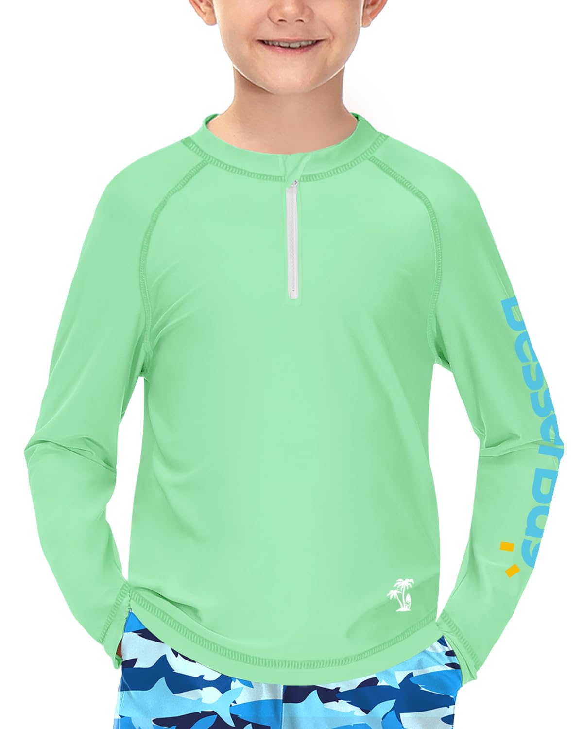 BesserBay Child Boys Sun Protection Rashguard Shirt Mint Green Beach Rubber Band Raglan Long Sleeve Surf Swim Top 9-10 Years
