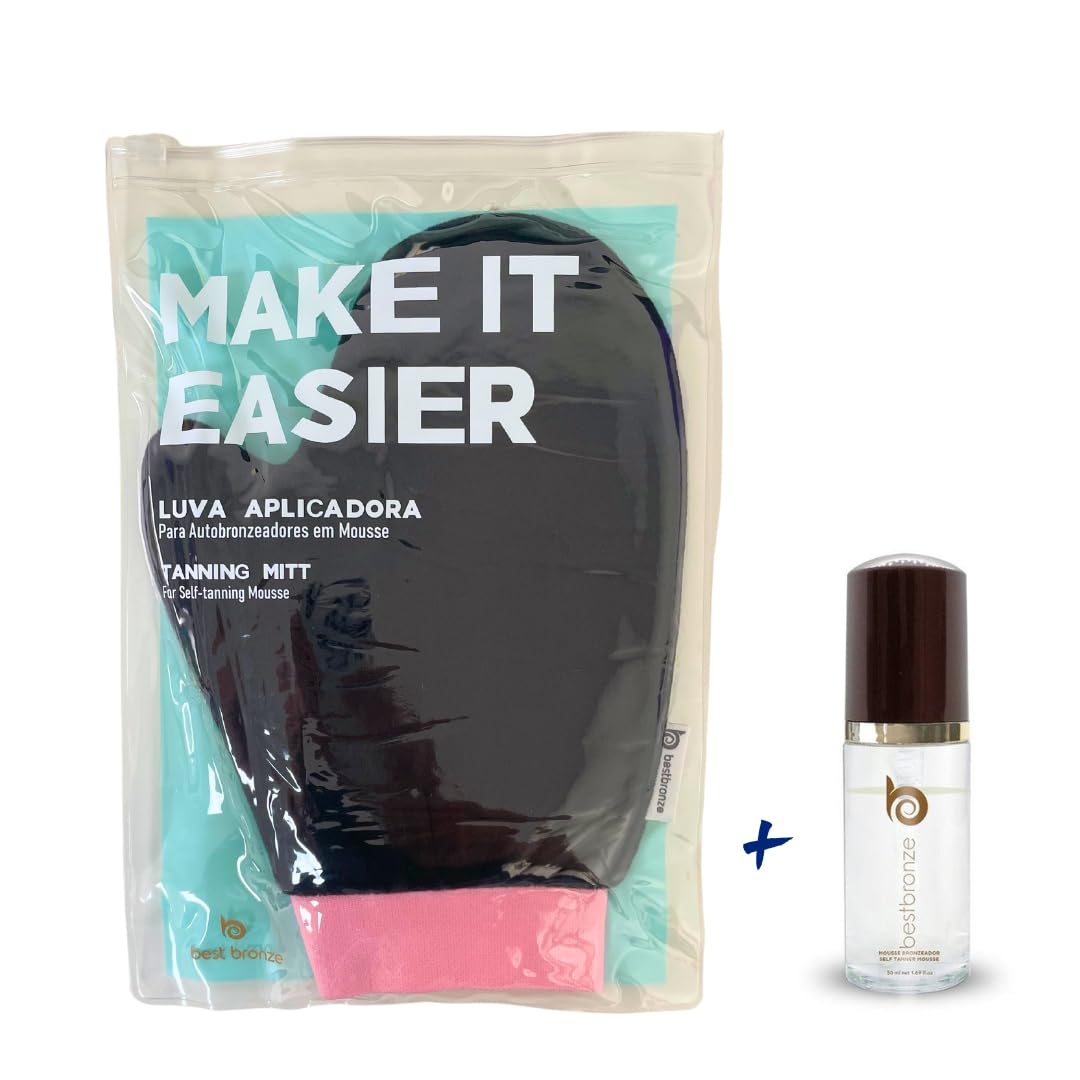 Best Bronze Self Tanner Mousse with Tanning Mitt, 0.85 Fl Oz - Clear Vegan Self Tanning Foam for Light, Medium, Dark Skin Tones - Easy-to-Use Body Bronzer for Oily, Sensitive, Dry Skin