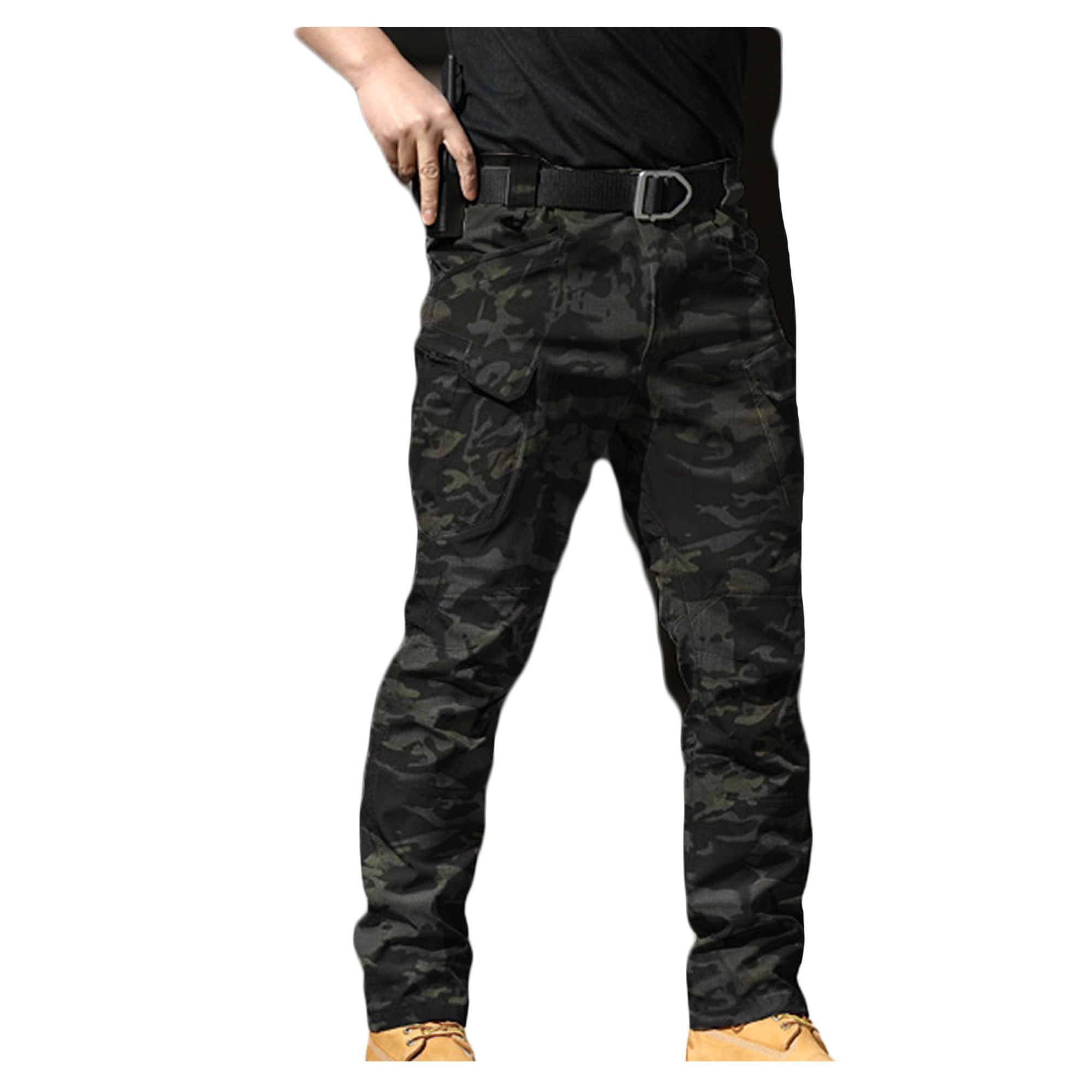 Bestgift Outdoor Pants Casual Straight Leg Cargo Pants Men's Long Pants Camouflage Black 2 IX7 S