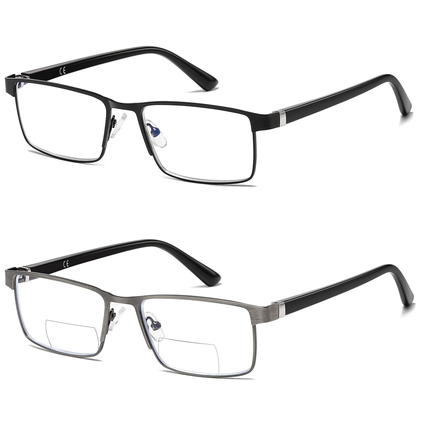 Bifocal Reading Glasses for Men Blue Light Blocking Computer Readers Lightweight Metal Frame Eyewear Spring Hinge 2PACK 3.0