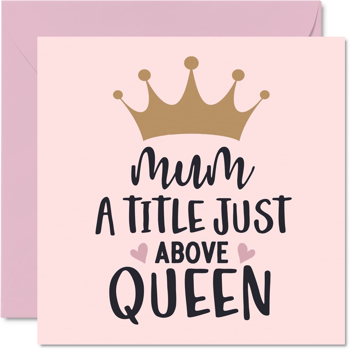 Birthday Cards for Mum - Mum A Title Just Above Queen - Funny Birthday Card for Mother from Daughter Son, Mum Birthday Gifts, 145mm x 145mm Mother's Day Greeting Cards for Mama Mam Mammy Mom Mommy